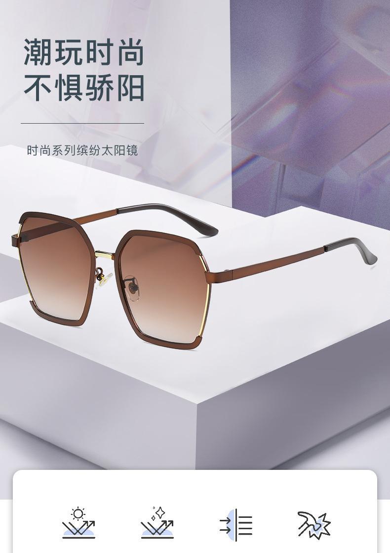 Óculos de Sol para Mulheres, Novo Armação Grande Anti-UV, Óculos de Sol Estilo Metal Retrô, Rosto Redondo Fashion, Óculos Versáteis, Rosto Grande na Moda