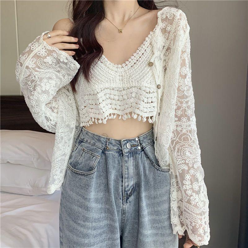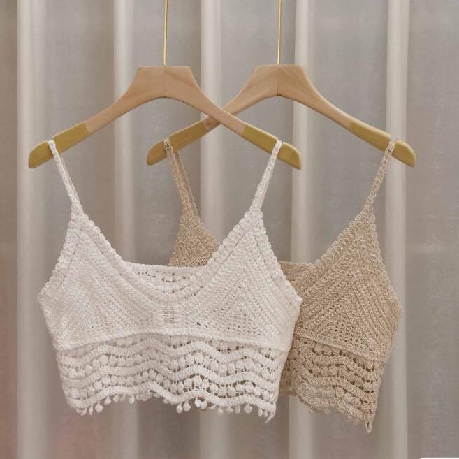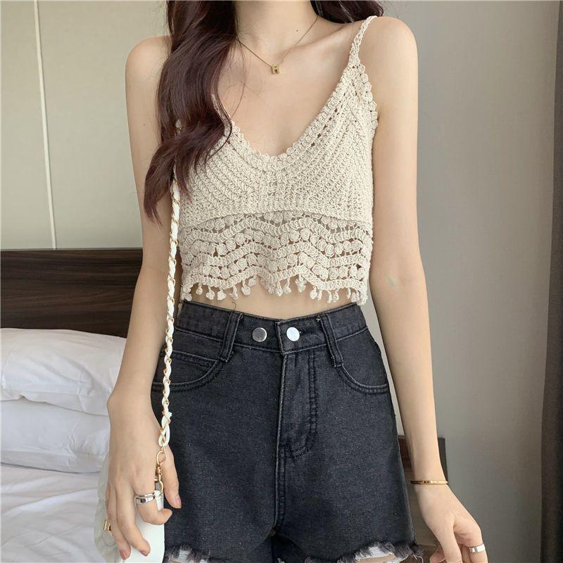Camisola de malha sem mangas vazada moderna sexy versátil top curto para mulheres Verão 2024 transfronteiriço