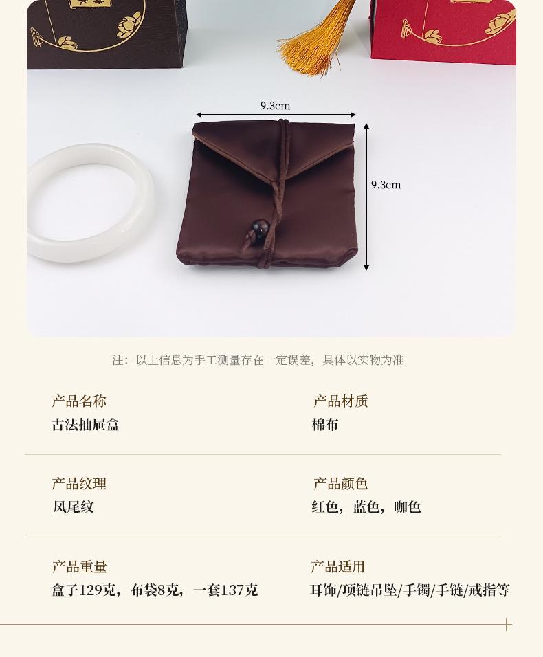 Red ancient drawer box (with cloth bag); 11.5*11.5*4.5cm, Blue ancient drawer box (with cloth bag); 11.5*11.5*...