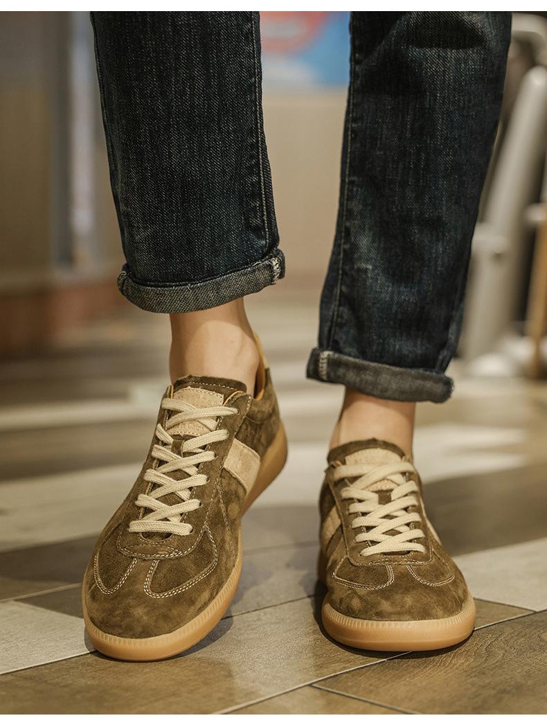 Tenis de Otoño para Hombre de Corte Bajo 2024 Diseño Nicho Zapatos Casuales para Jóvenes Cómodos de Cuero Retro Entrenadores del Ejército Alemán