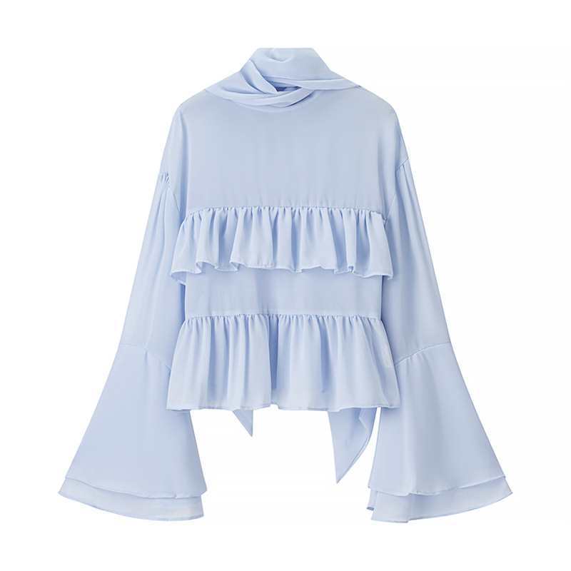 Camisas Femininas de Verão de Manga Comprida Estilo Europeu e Americano, Soltas, Modernas, Casuais, Chiffon de Cor Sólida, Novas Versáteis de Comércio Exterior