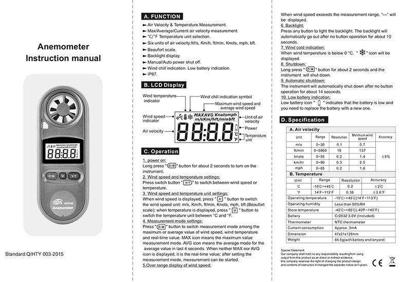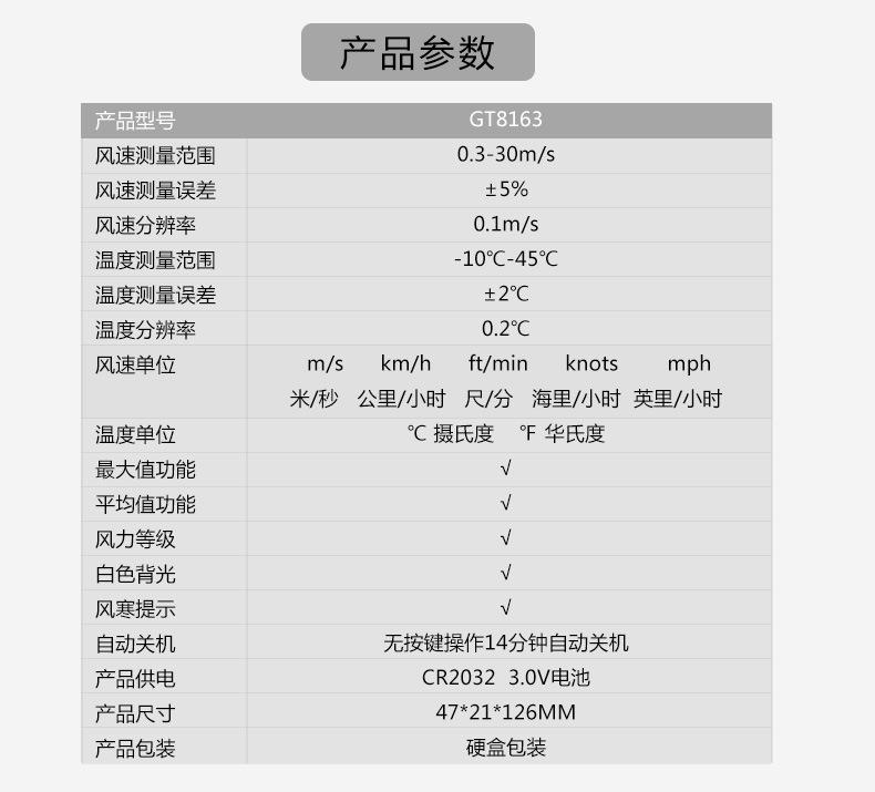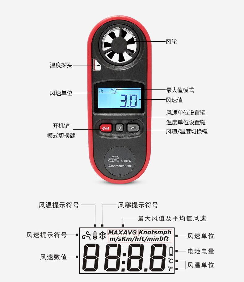 Sabedoria padrão anemômetro GT8163 anemômetro de alta precisão testador de velocidade do vento anemômetro temperatura do vento anemômetro de vento