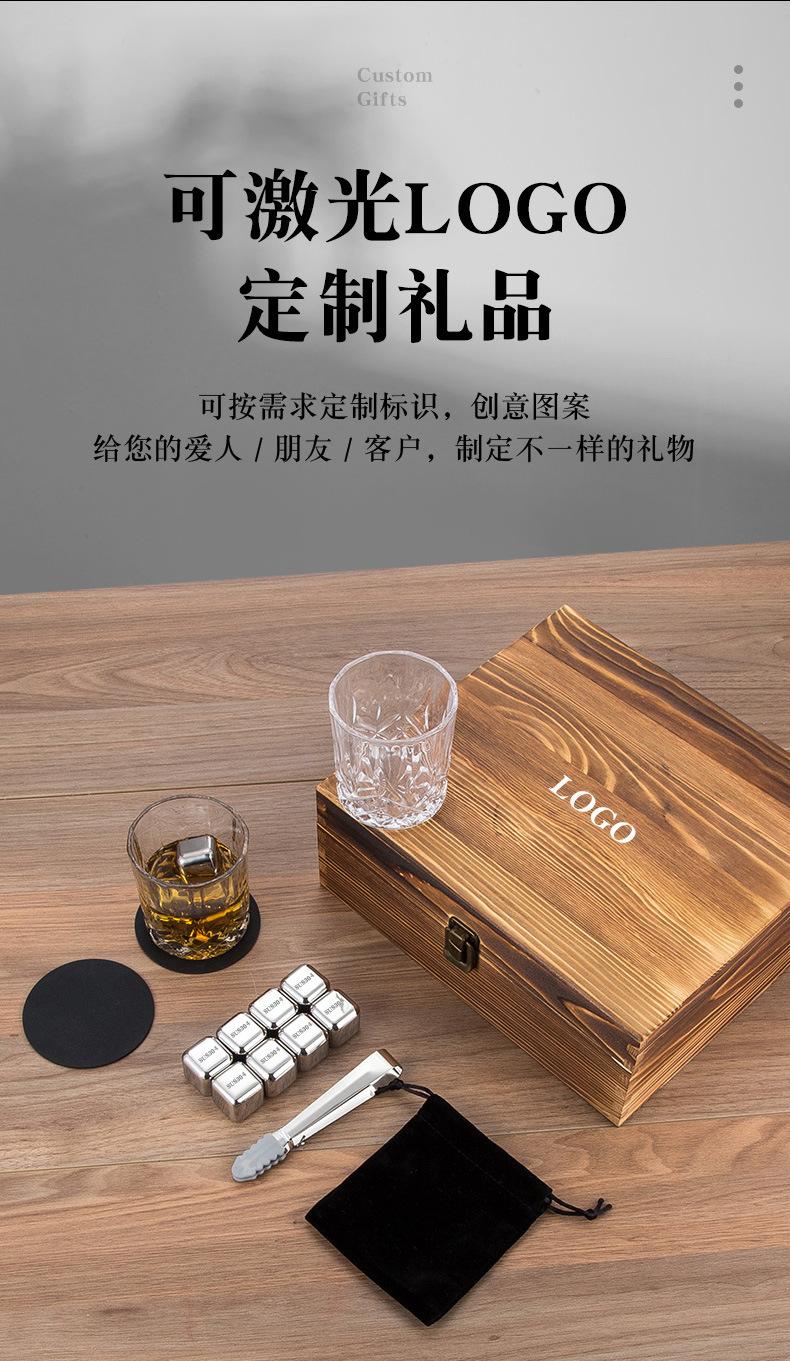 [em estoque] Profissional não-aço bloco de gelo caixa de madeira terno presentes Amazon AliExpress uma geração de LOGO gravado