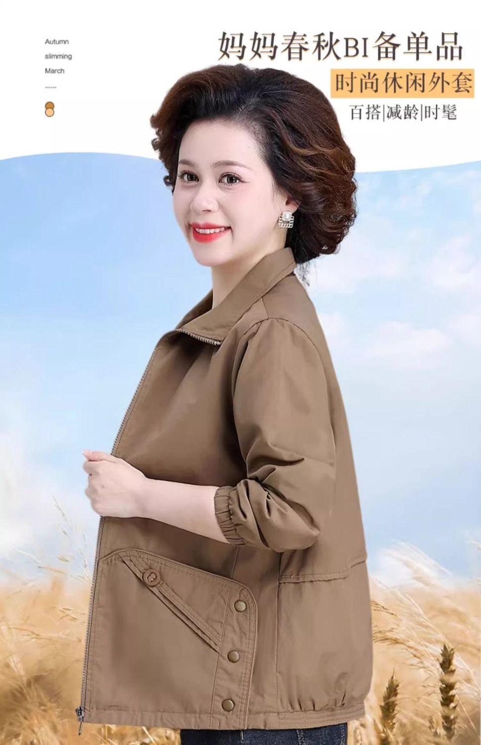 Casaco Trench de Primavera e Outono para Mães Novo Casaco Casual da Moda para Mulheres 50-60 Meia-Idade e Idosas Solto Plus Size Top