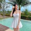 2025 Novo Maiô Sexy Slim Fit Cobrindo a Barriga Sem Costas Push-Up Conservador Pequeno Fresco Verde Maiô de Uma Peça para Mulheres