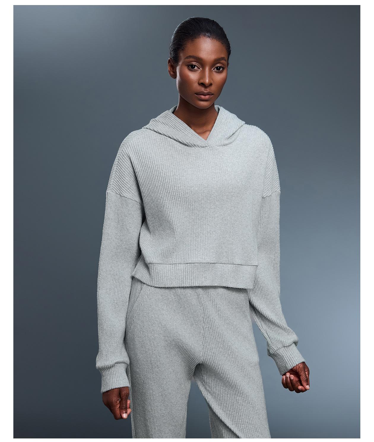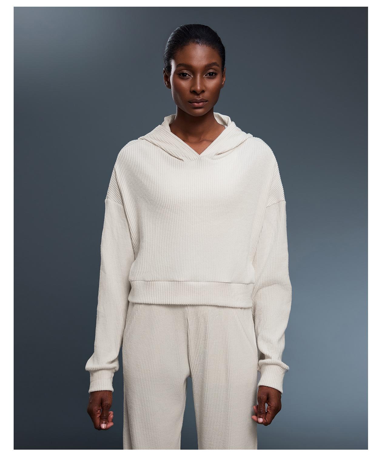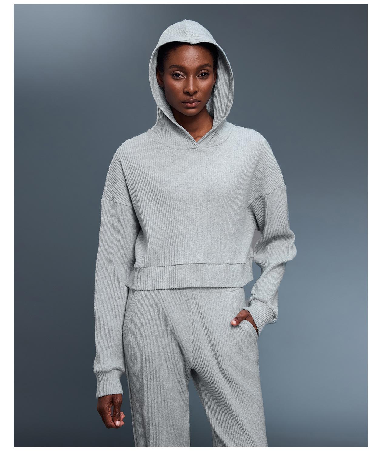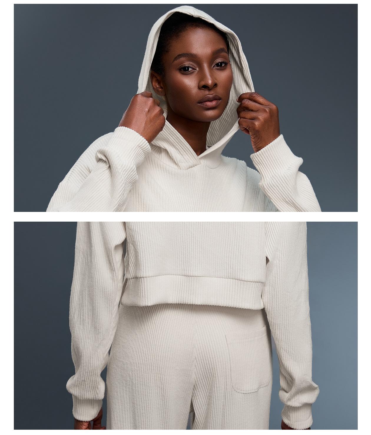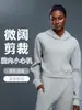 Moletom Casual Curto Solto com Capuz Feminino Outono Ombro Caído Pulôver Manga Longa Corrida Fitness Esportivo Top D25162