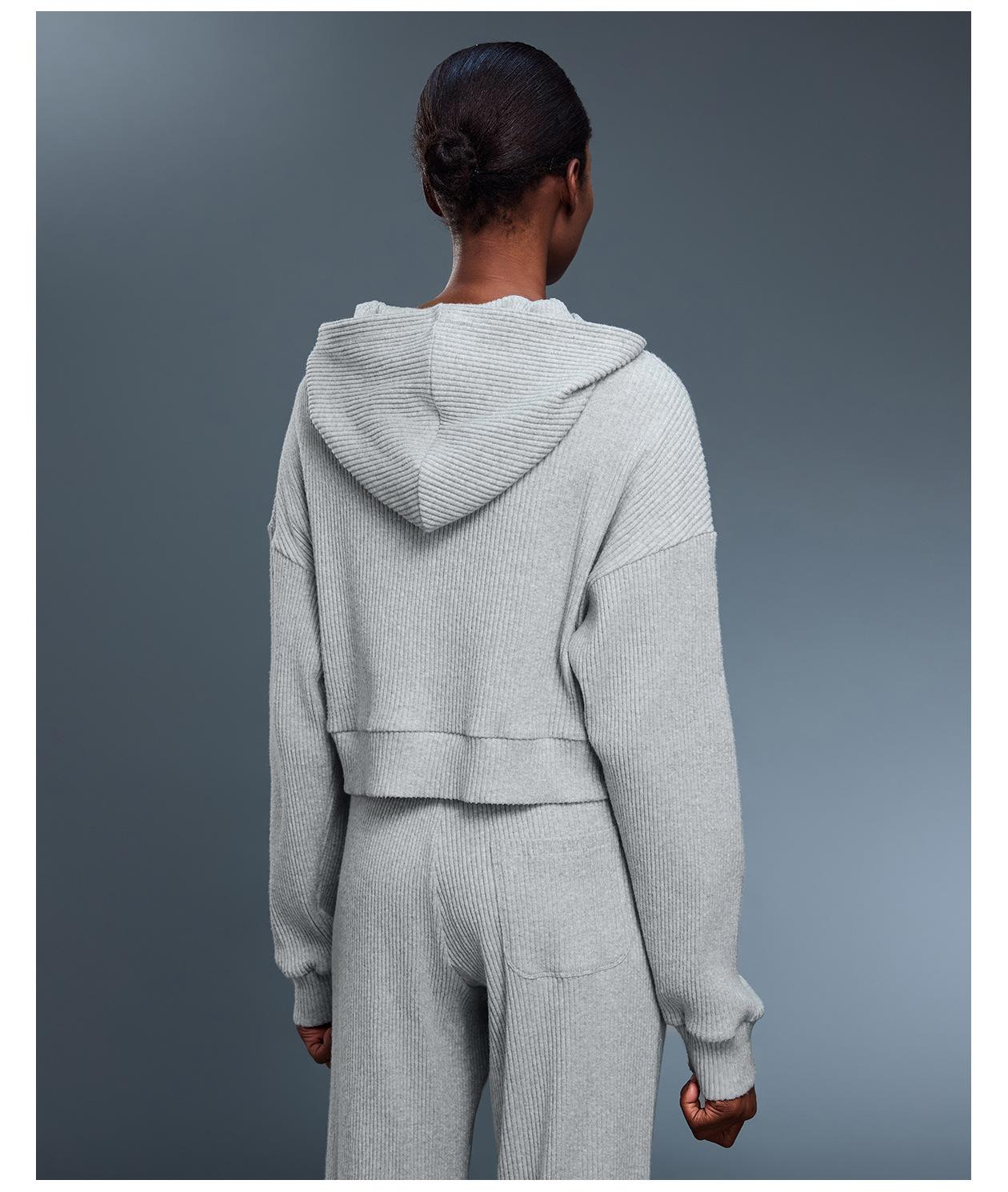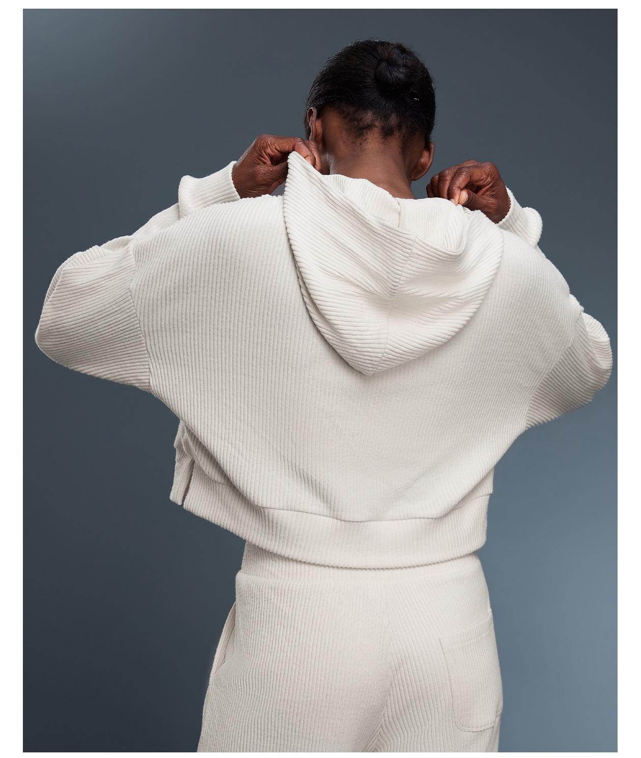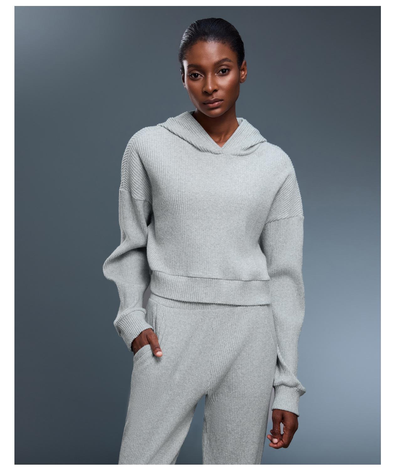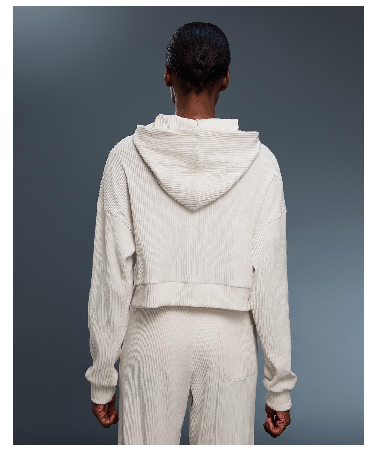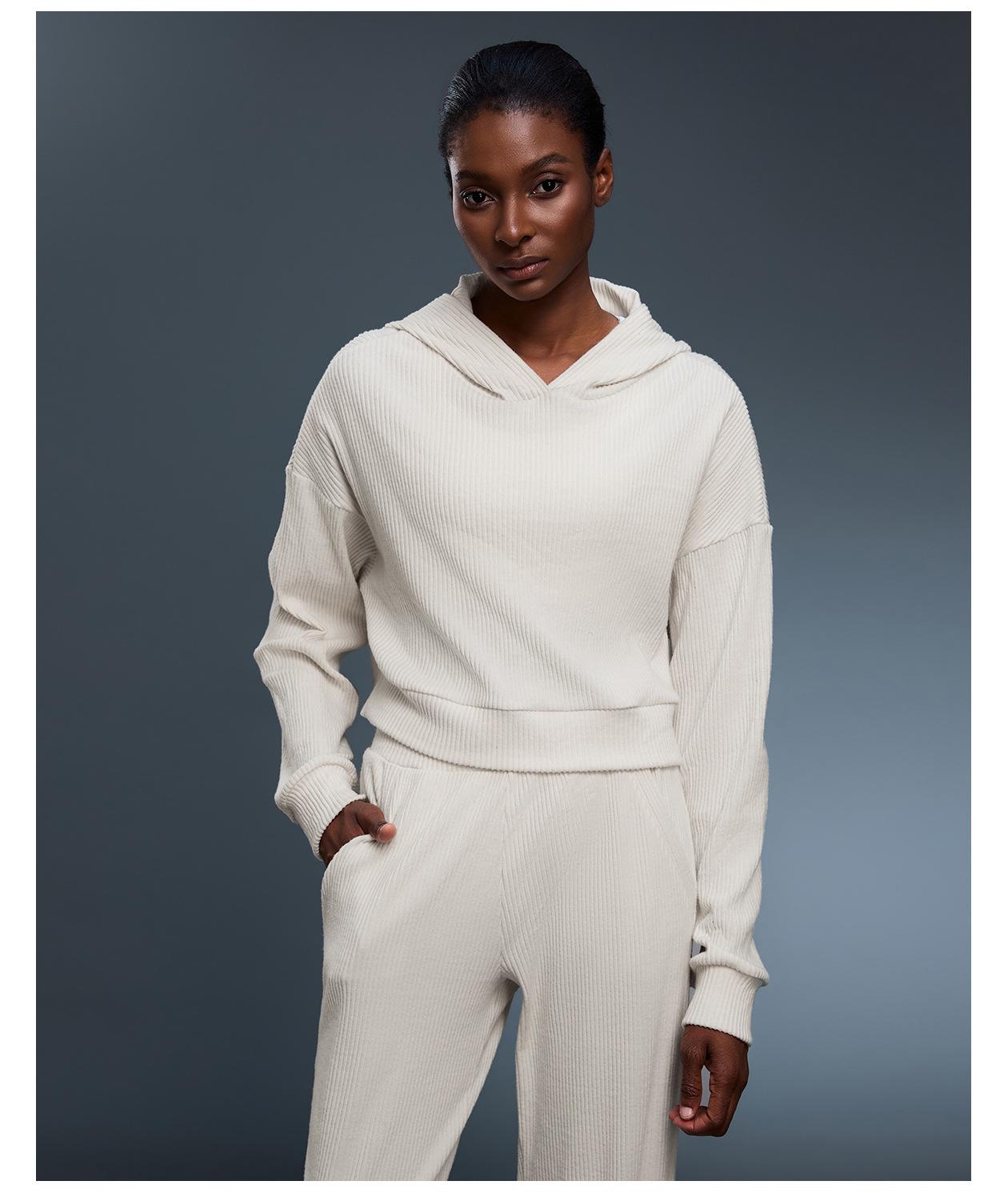 Moletom Casual Curto Solto com Capuz Feminino Outono Ombro Caído Pulôver Manga Longa Corrida Fitness Esportivo Top D25162