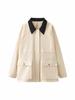 Roupas femininas de comércio exterior transfronteiriço outono/inverno 2025 jaqueta de veludo cotelê de lapela de manga comprida casaco de algodão agasalho feminino M561224F