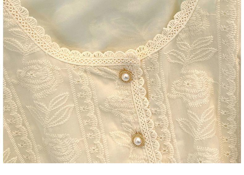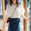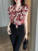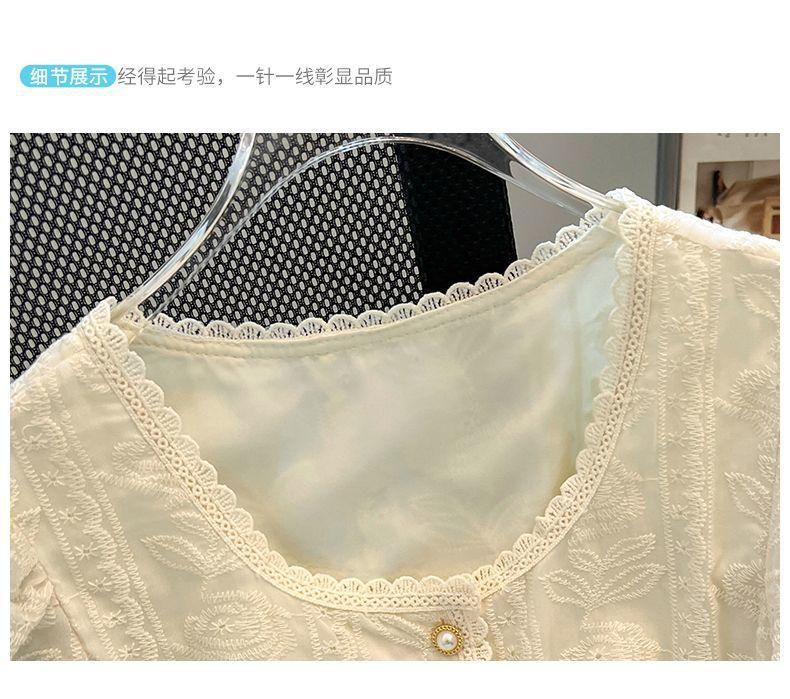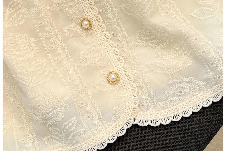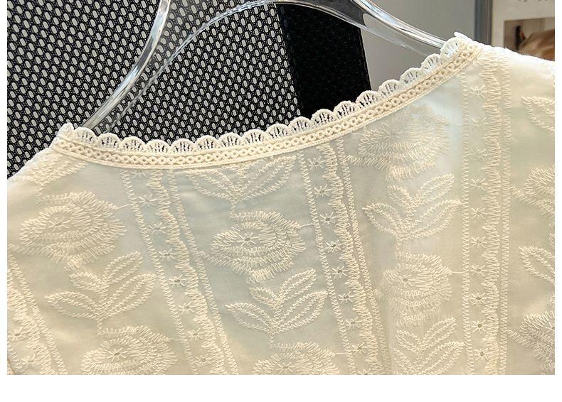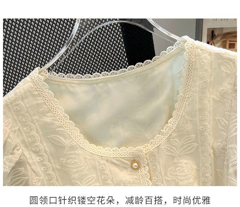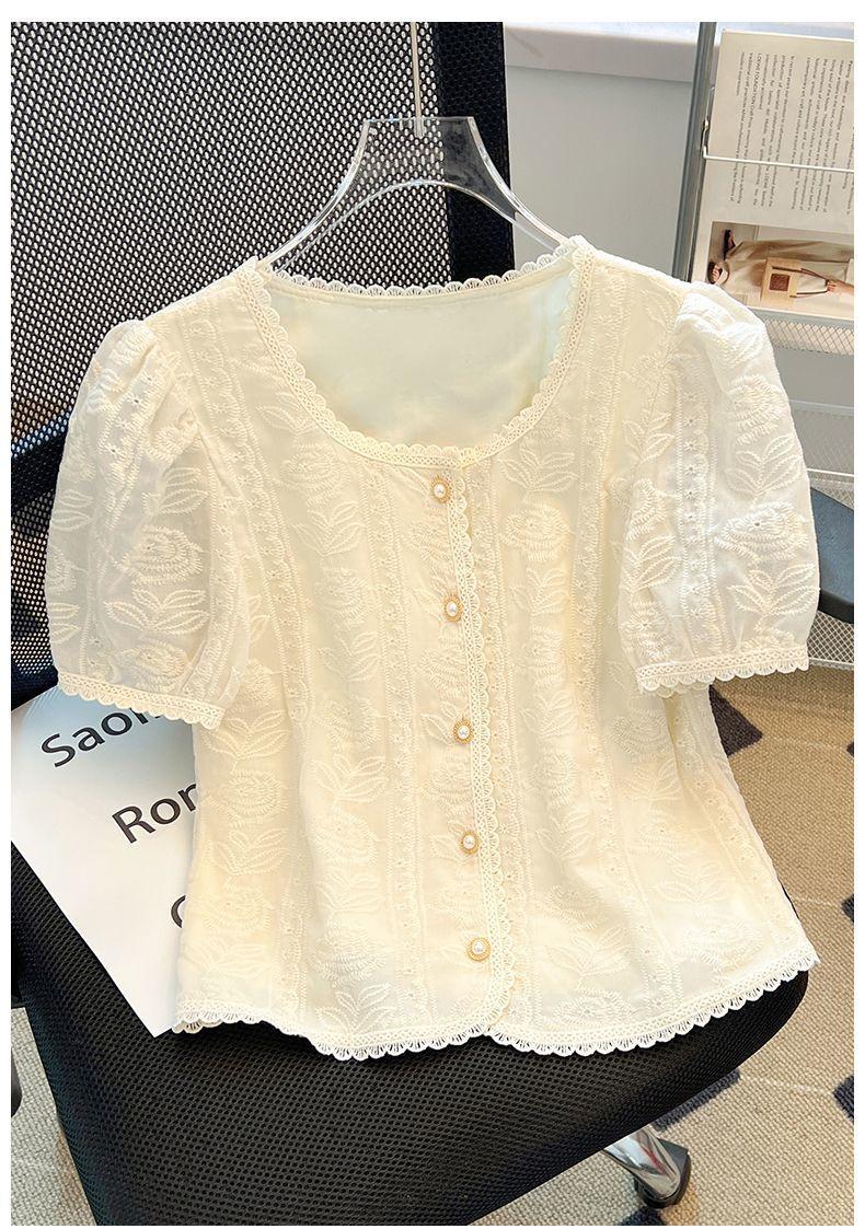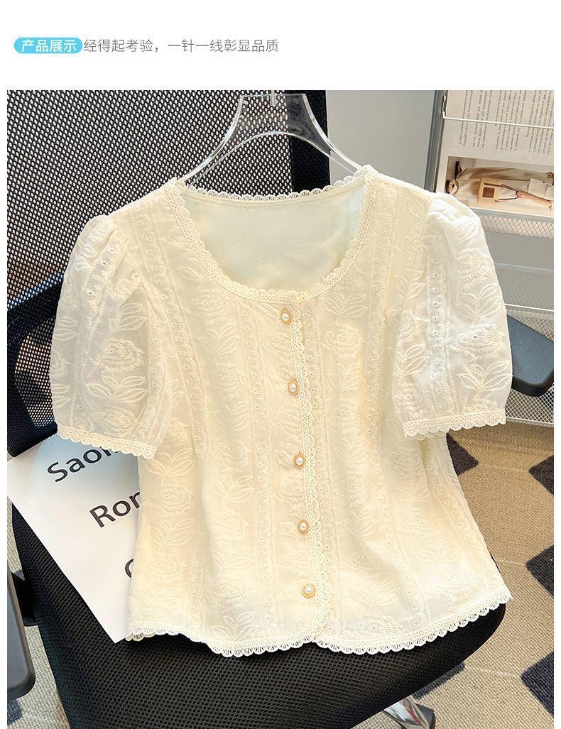 Blusa de Renda Manga Bufante Francesa para Mulheres Verão 2024 Nova Elegante Camisa de Chiffon Manga Curta Tamanho Grande Camisa Feminina