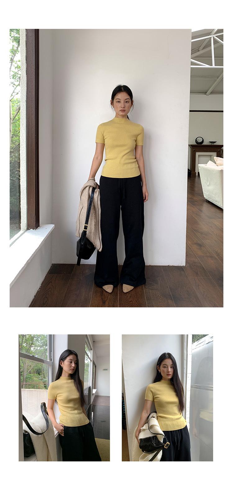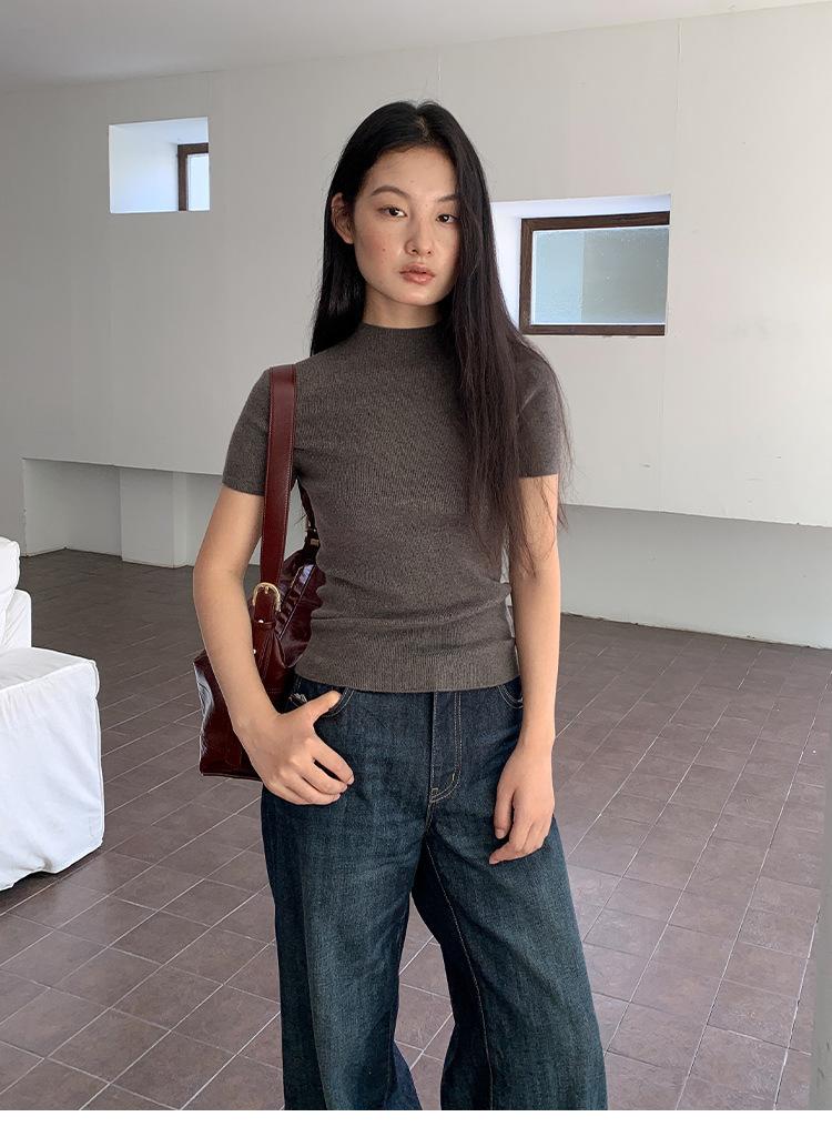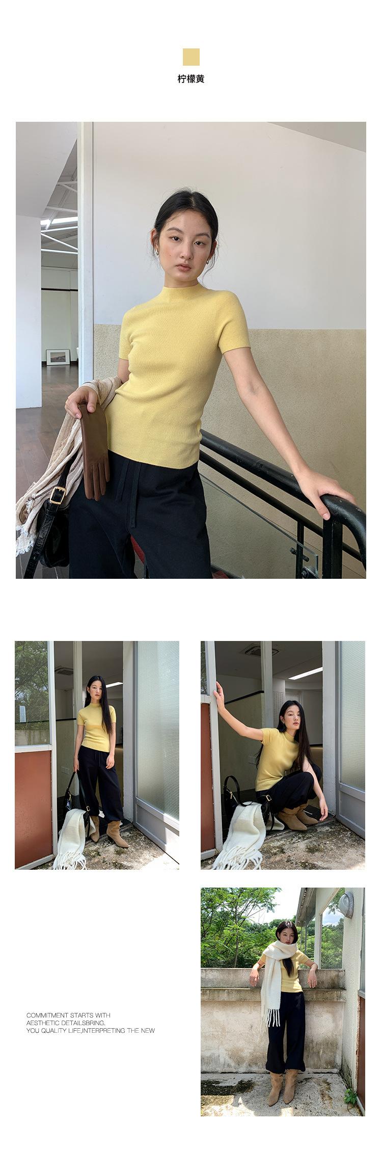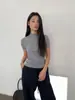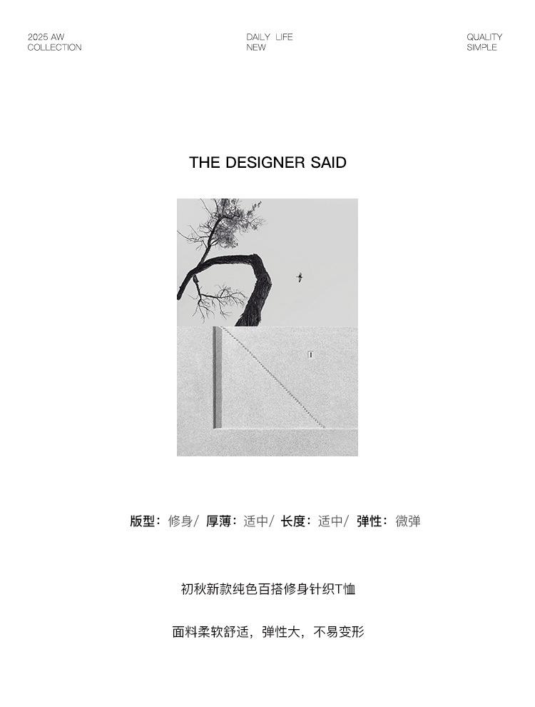 Mulan Versátil Camiseta Tricotada Amiga da Pele Feminina 2025 Treze Linhas Outono Novo Confortável Elástico Top 56865