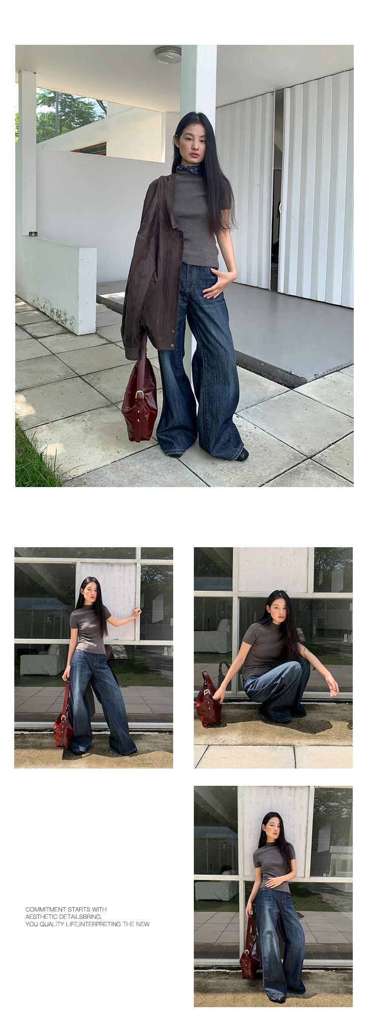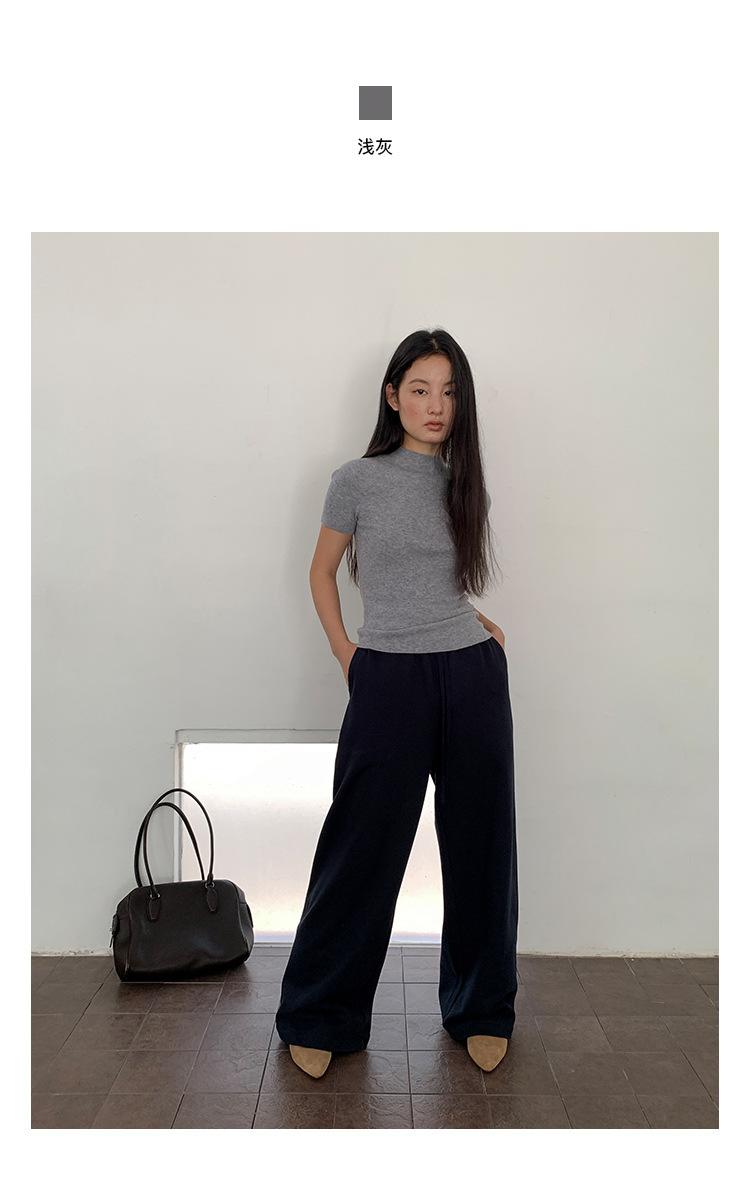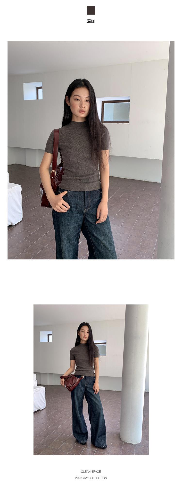 Mulan Versátil Camiseta Tricotada Amiga da Pele Feminina 2025 Treze Linhas Outono Novo Confortável Elástico Top 56865