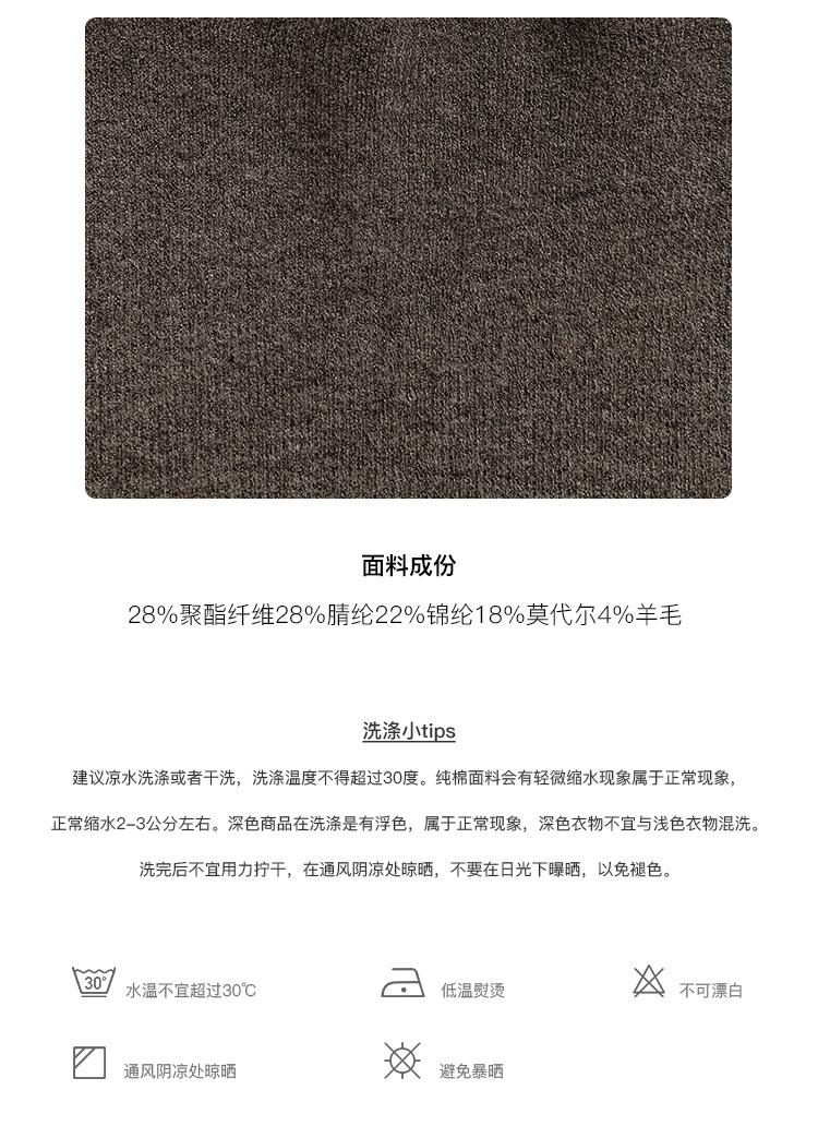 28% polyester fiber 28% acrylic fiber 22% nylon 18% modal 4% wool
