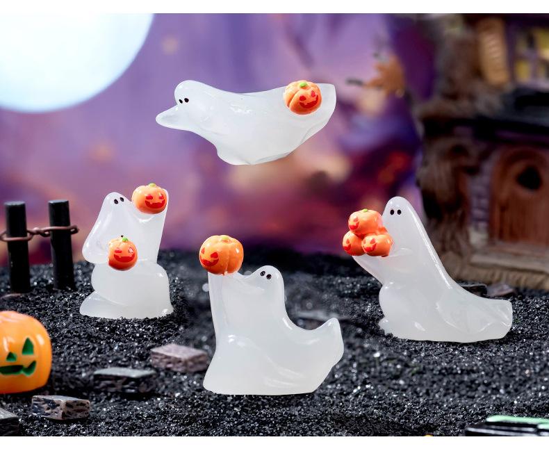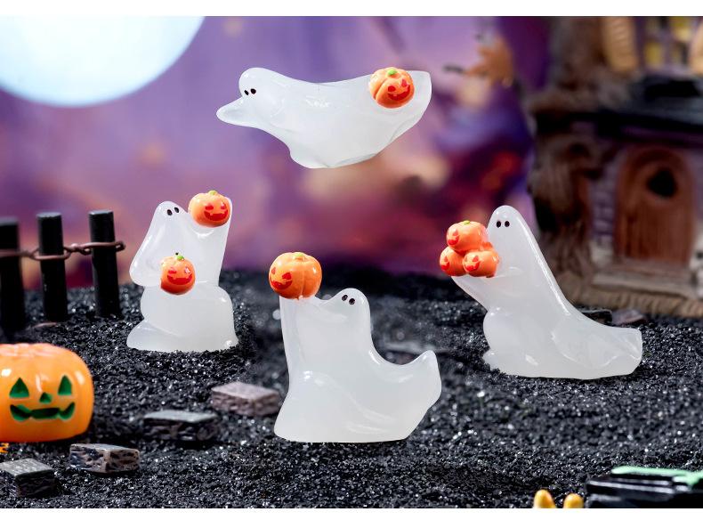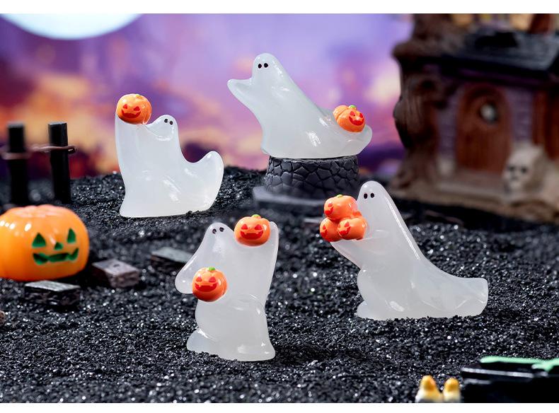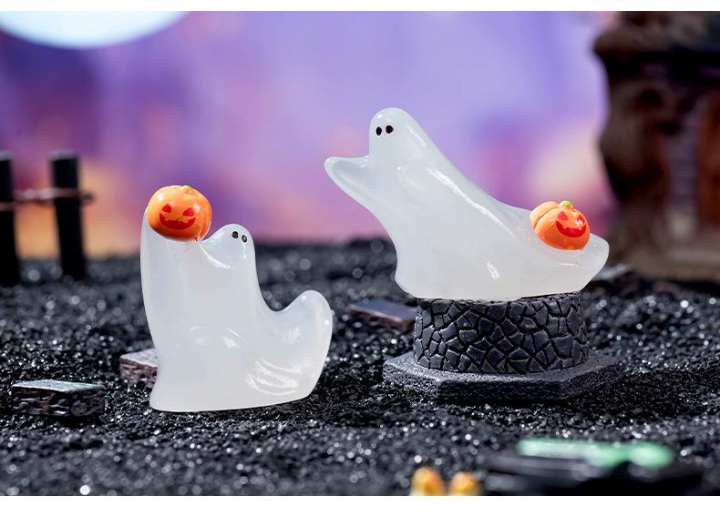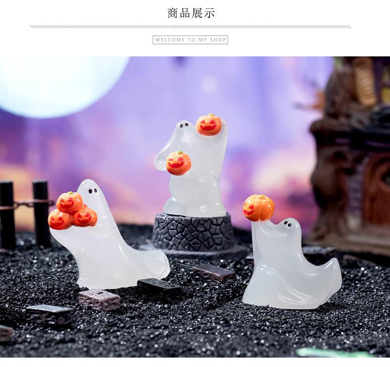 Novo Produto Transfronteiriço Fantasma Luminoso Inteligente Segurando Abóbora Fantasma Branco Criativo Cena de Festival de Fantasmas de Halloween Adornos de Decoração de Festa