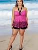 Novo Biquíni Maiô Rosa Estampado com Saia Franzida Estilo Europeu e Americano, Tamanho Grande, com Suspensórios, Afinando a Cintura e Cobrindo a Barriga