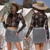 Camisa Cropped Sexy de Cintura Alta Roupa Brocada