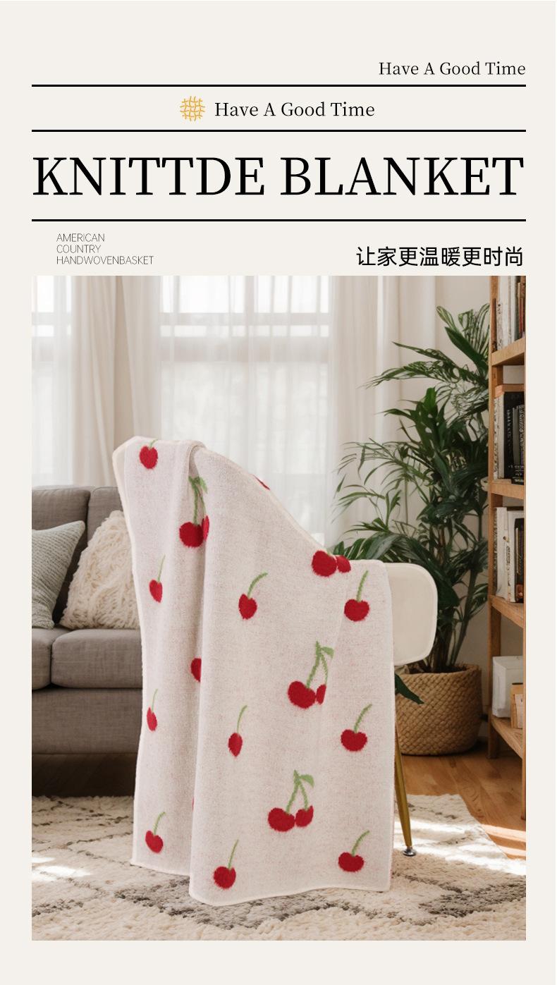 Manta de Bebê Tipo A Quente Mais Vendida Outono e Inverno Manta Tricotada Jacquard de Cereja Fofa Manta para Recém-Nascido Manta para Ar Condicionado