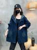 2025 Outono Novo Retrô Simples Artístico Cor Sólida Jaqueta Solta Casual com Capuz Bolso Grande Jaqueta Jeans
