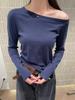 Compre Camiseta Feminina Manga Longa com Ombro Assimétrico, Camisa de Camada Interna com Ombro Assimétrico, Top Curto, Modelagem Justa, Novo Estilo Outono 2025 no atacado no Joom.pro