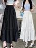 Saia evasê preta Saia Feminina Primavera 2025 Nova Chegada Saia Cintura Alta Comprimento Médio Ajustada Saia Guarda-chuva Saia Longa