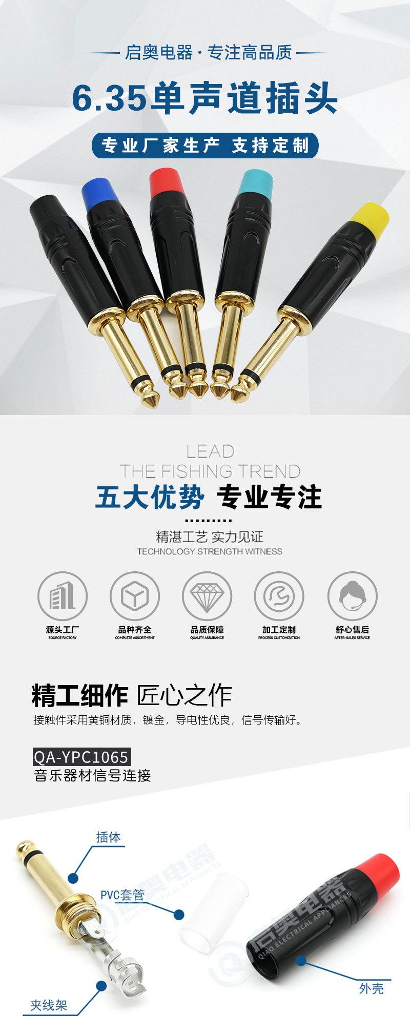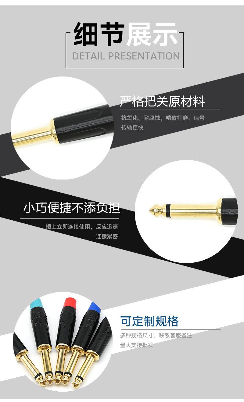 Plugue de áudio mono de 6,35 mm de alta qualidade, grande, dois núcleos, banhado a ouro, microfone, adaptador de microfone