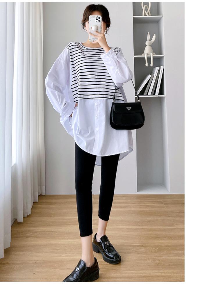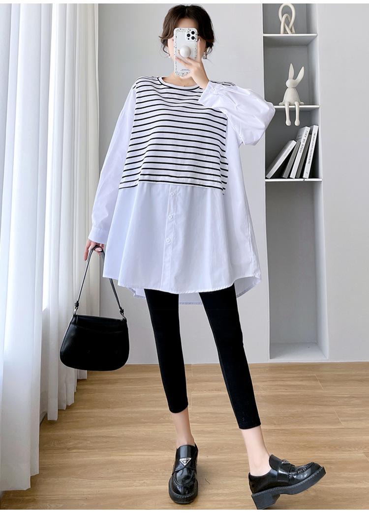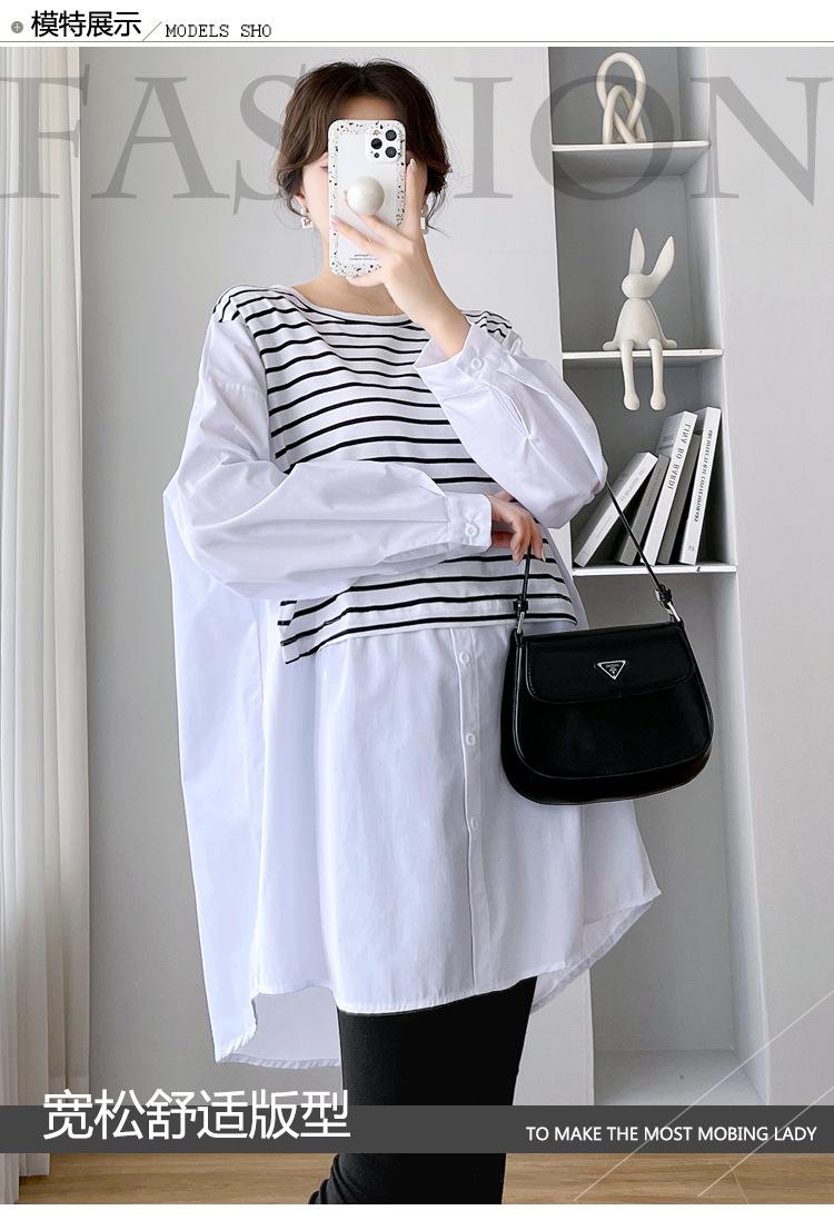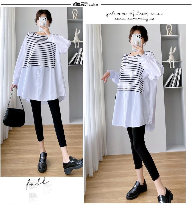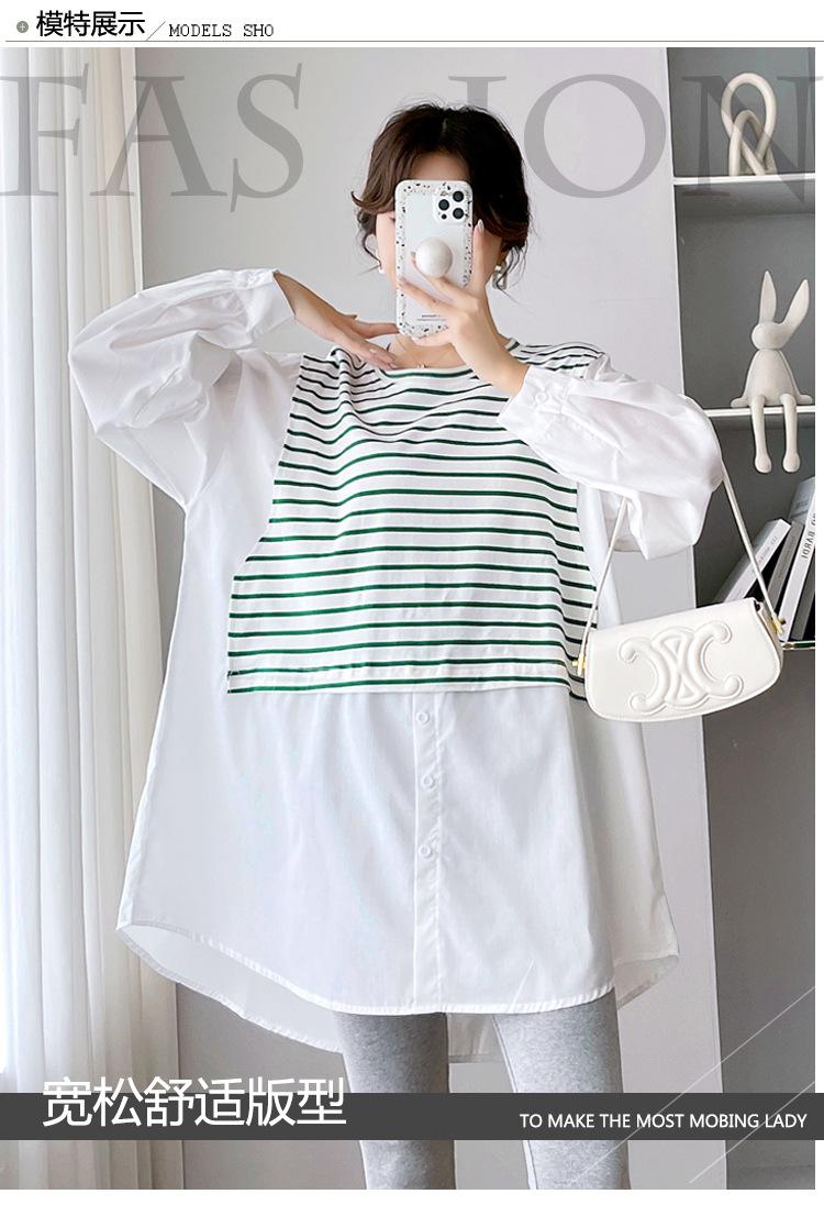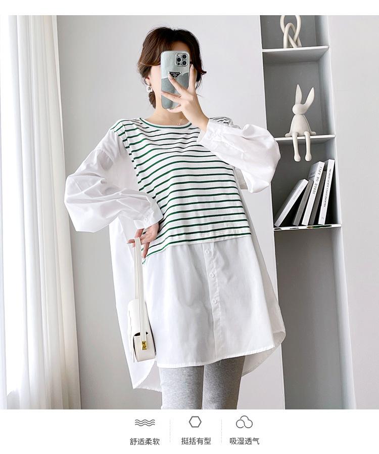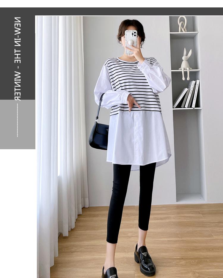 Roupa de Maternidade Primavera e Outono Novo Moda Coreana Camiseta Casual Duas Peças Falsas Solta Plus Size Vestido de Maternidade