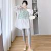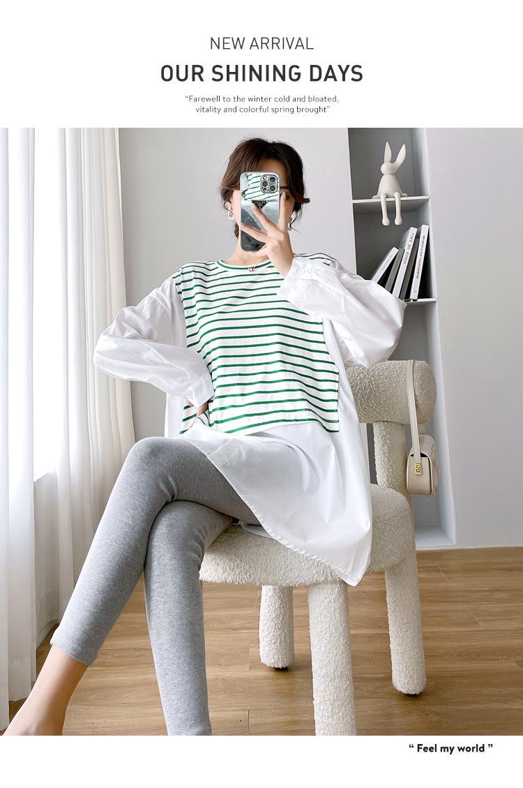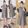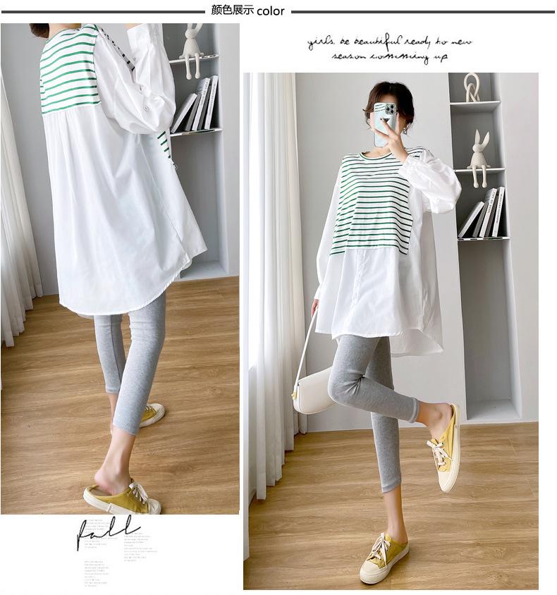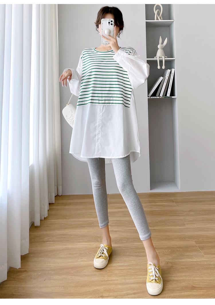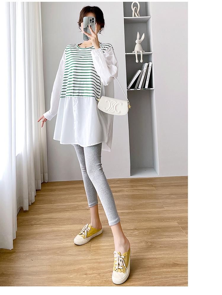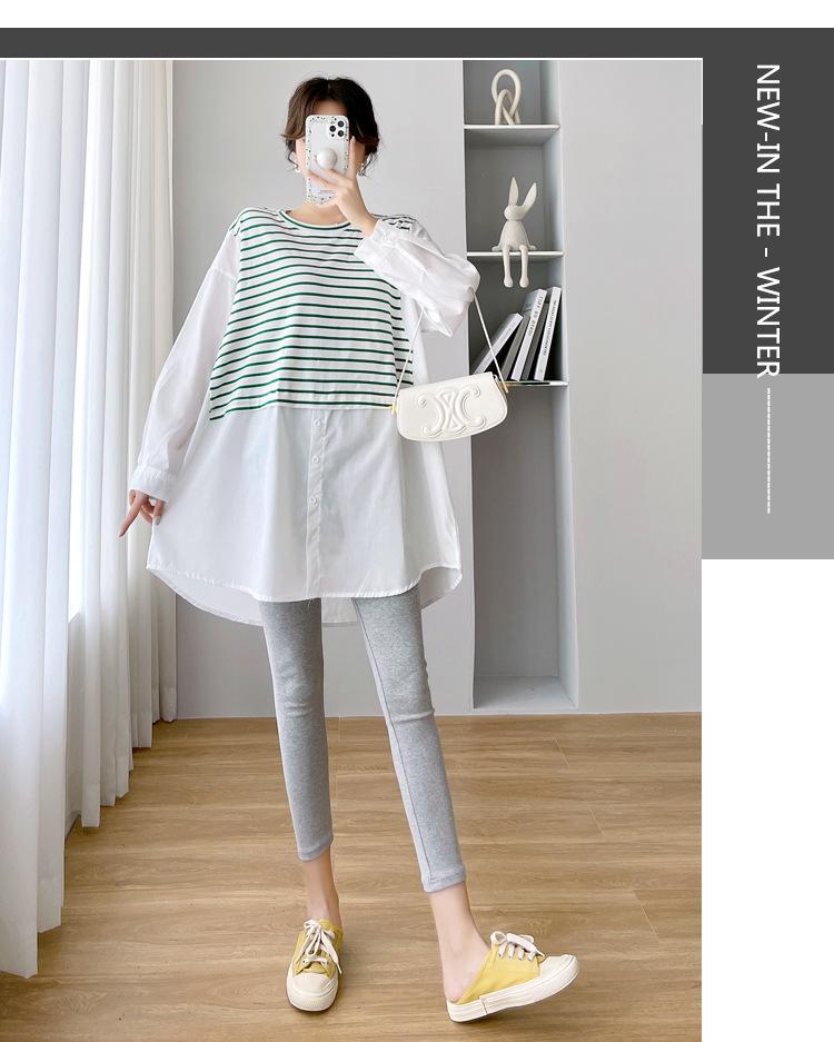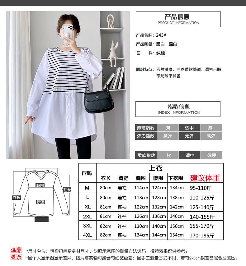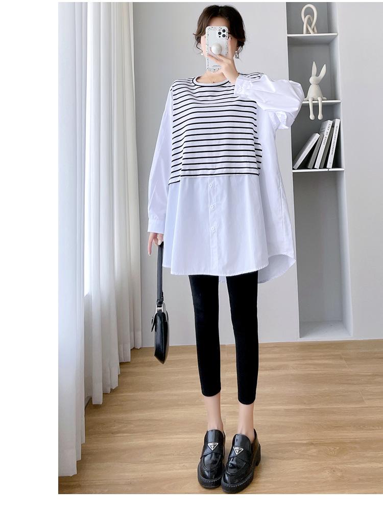 Roupa de Maternidade Primavera e Outono Novo Moda Coreana Camiseta Casual Duas Peças Falsas Solta Plus Size Vestido de Maternidade