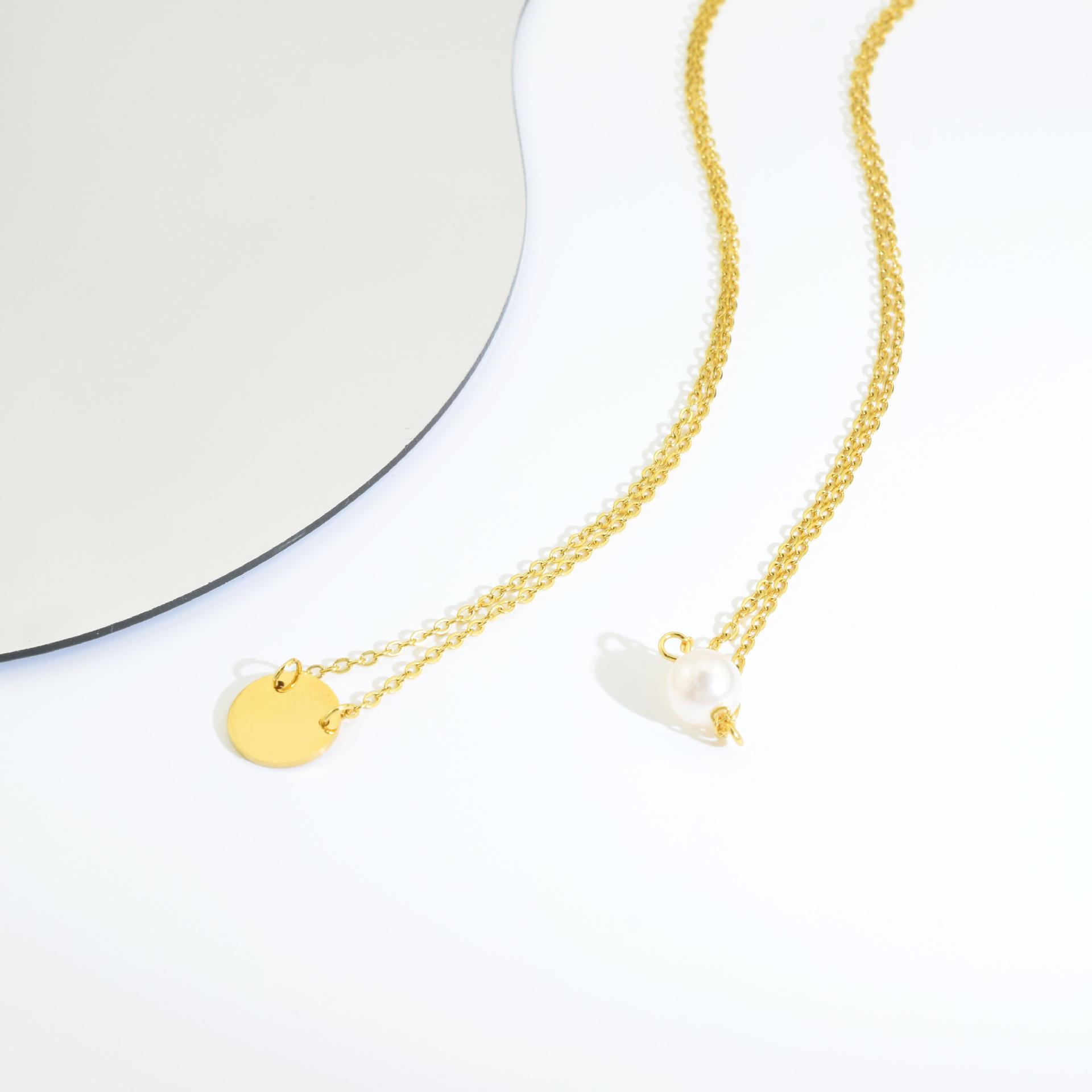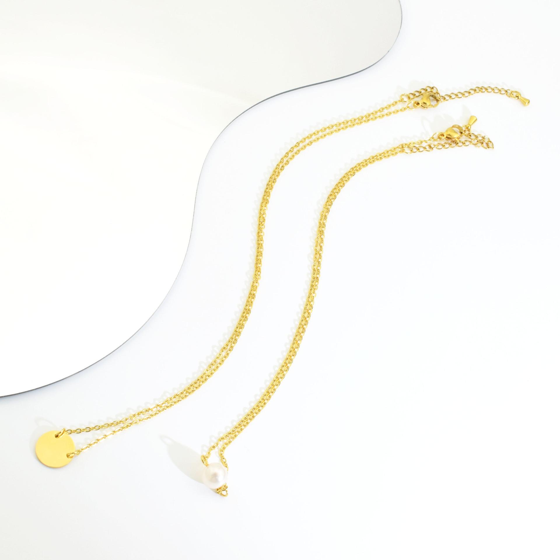 Tamanho: Comprimento do colar de pérolas 35+5CM Comprimento do colar de disco redondo 40+5CM Largura da corrente 1.8MM Largura da pérola 8.2MM Largura do disco redondo 12.1MM