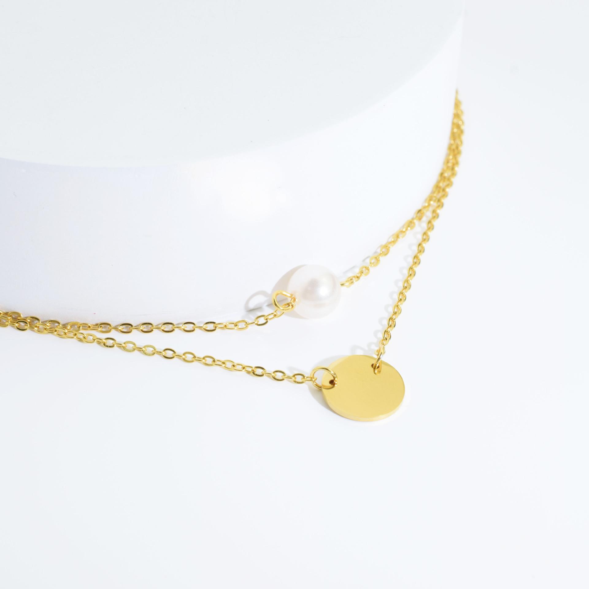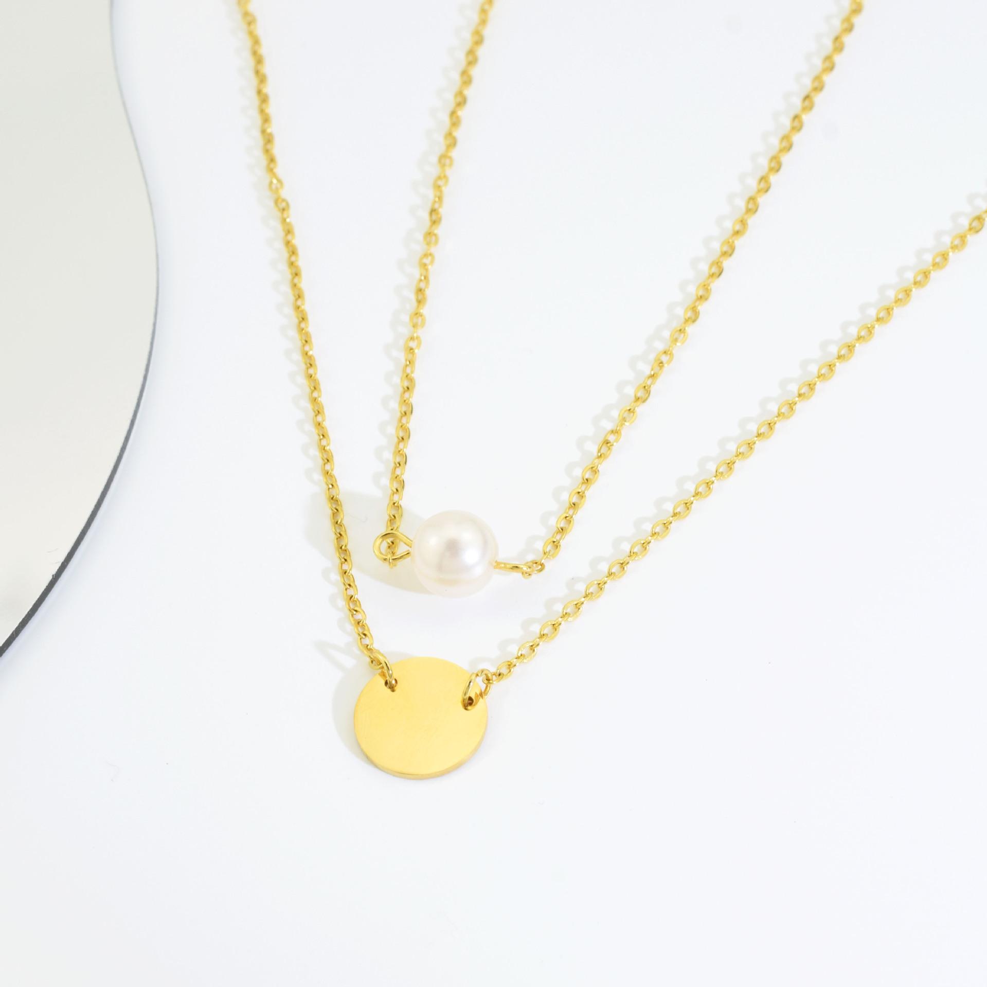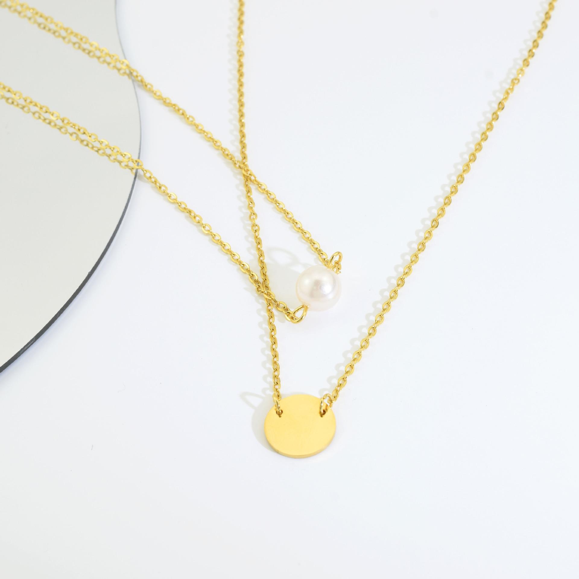 Colar Feminino Novo Aço Inoxidável Redondo Pingente de Fada Colar de Pérolas Camadas Gargantilha de Aço Inoxidável de Camada Dupla