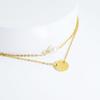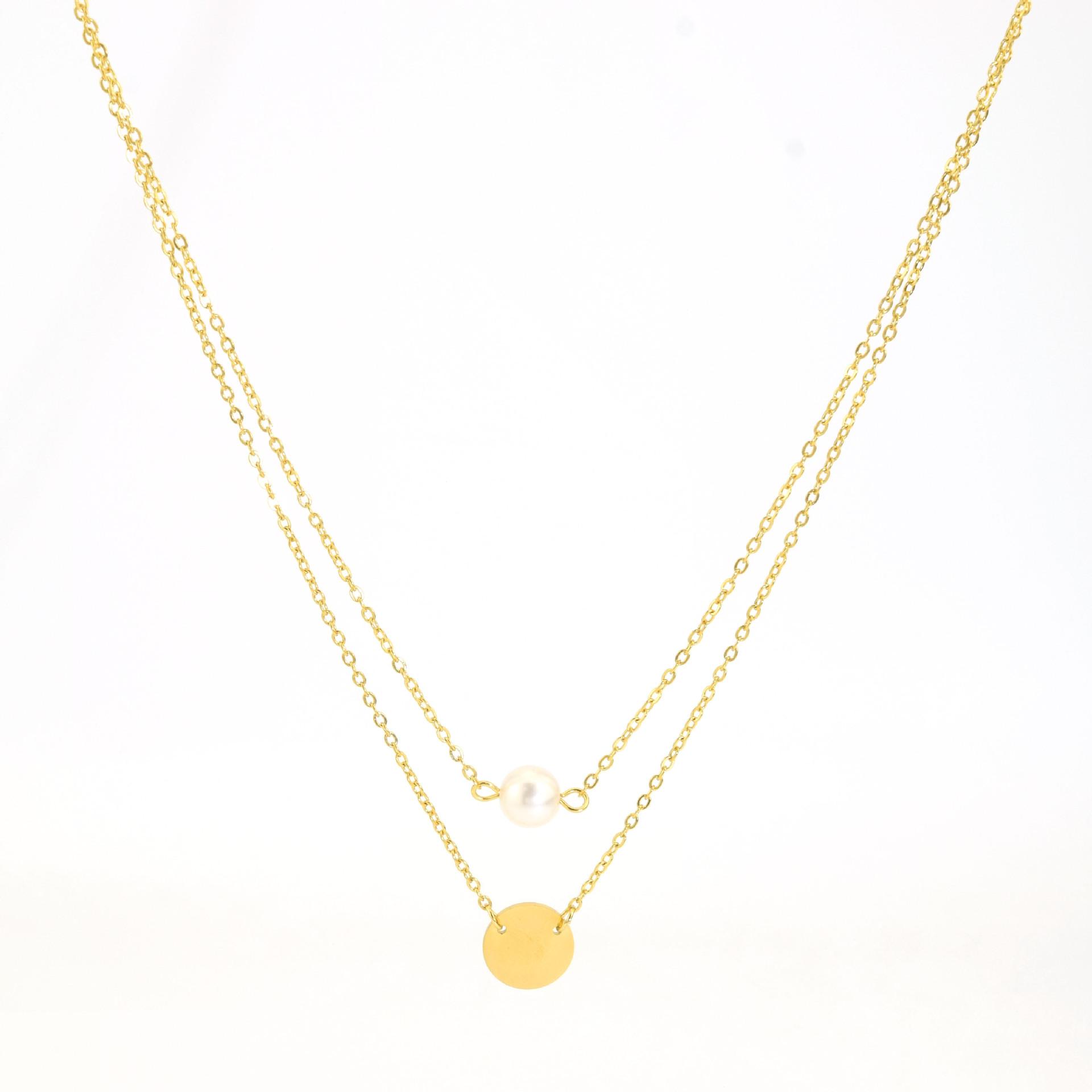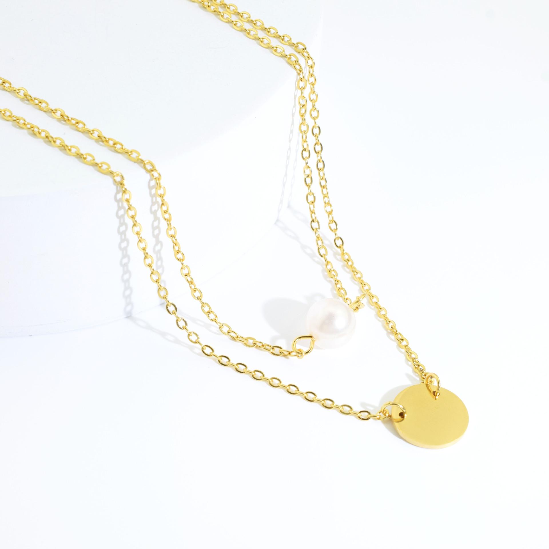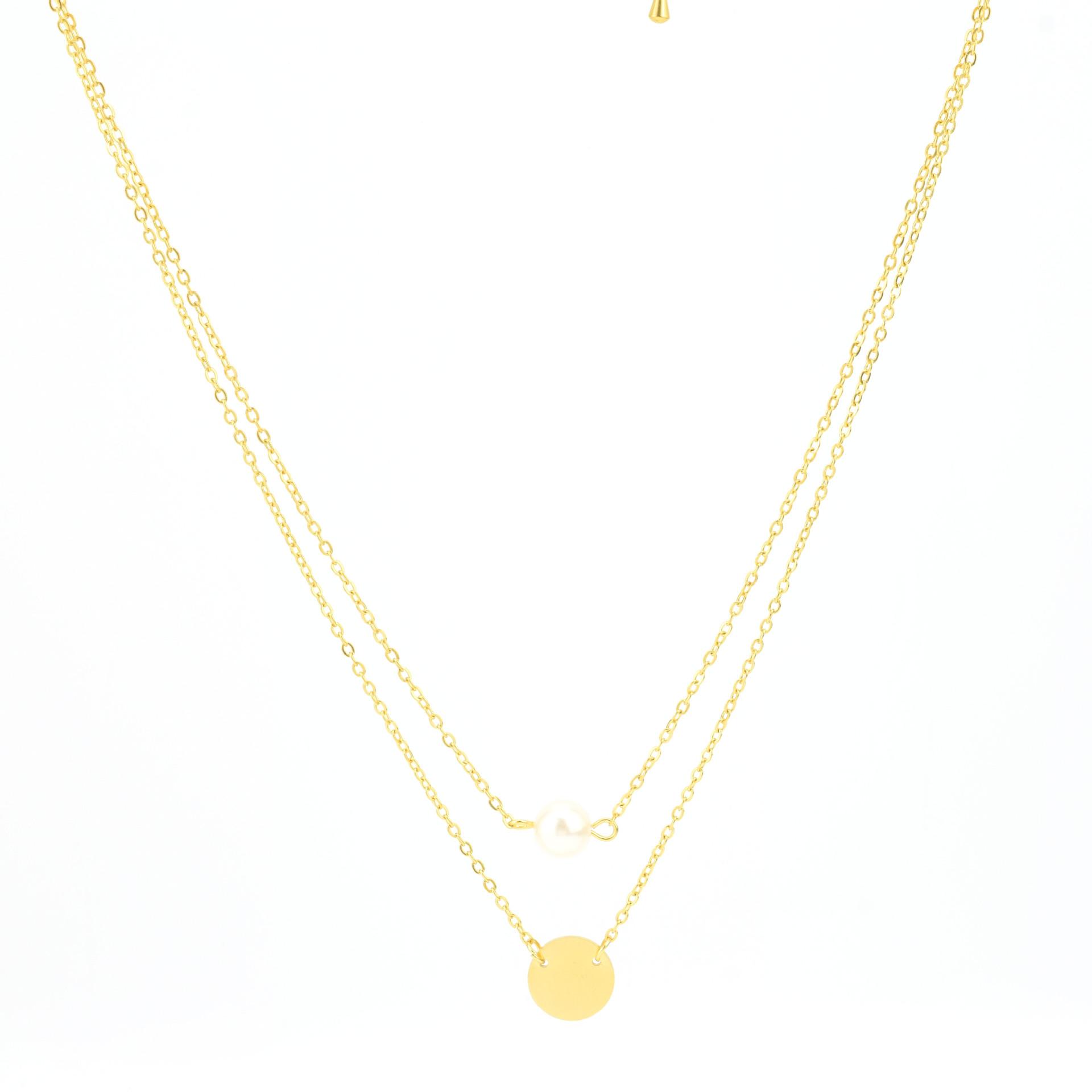 Colar Feminino Novo Aço Inoxidável Redondo Pingente de Fada Colar de Pérolas Camadas Gargantilha de Aço Inoxidável de Camada Dupla
