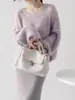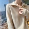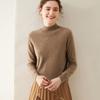 Caxemira Macia e Glutinosa Feminina Gola Média Solta Cor Sólida Estilo Delicado Simples Quente Outono e Inverno Nova Camiseta Básica