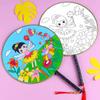 Atacado de fábrica leque redondo leque de pintura infantil leque pintado à mão DIY leque em branco para preencher grafite leque palaciano pequeno leque redondo