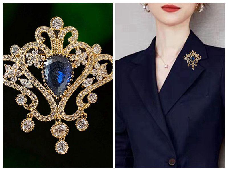 Broche Coroa Luxo Sofisticado Zircônia Cravejada Corsage Versátil Personalidade Terno Acessórios de Vestuário Feminino Acessórios de Moda