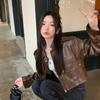 Jaqueta Pequena de Couro Preta para Motocicleta Casaco Mulher 2024 Outono Novo High-End Pequena Jaqueta Curta Tendência Top