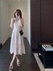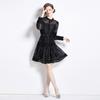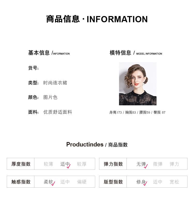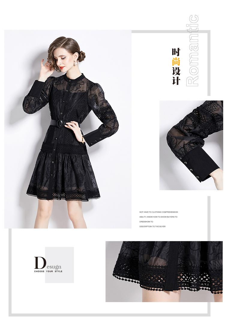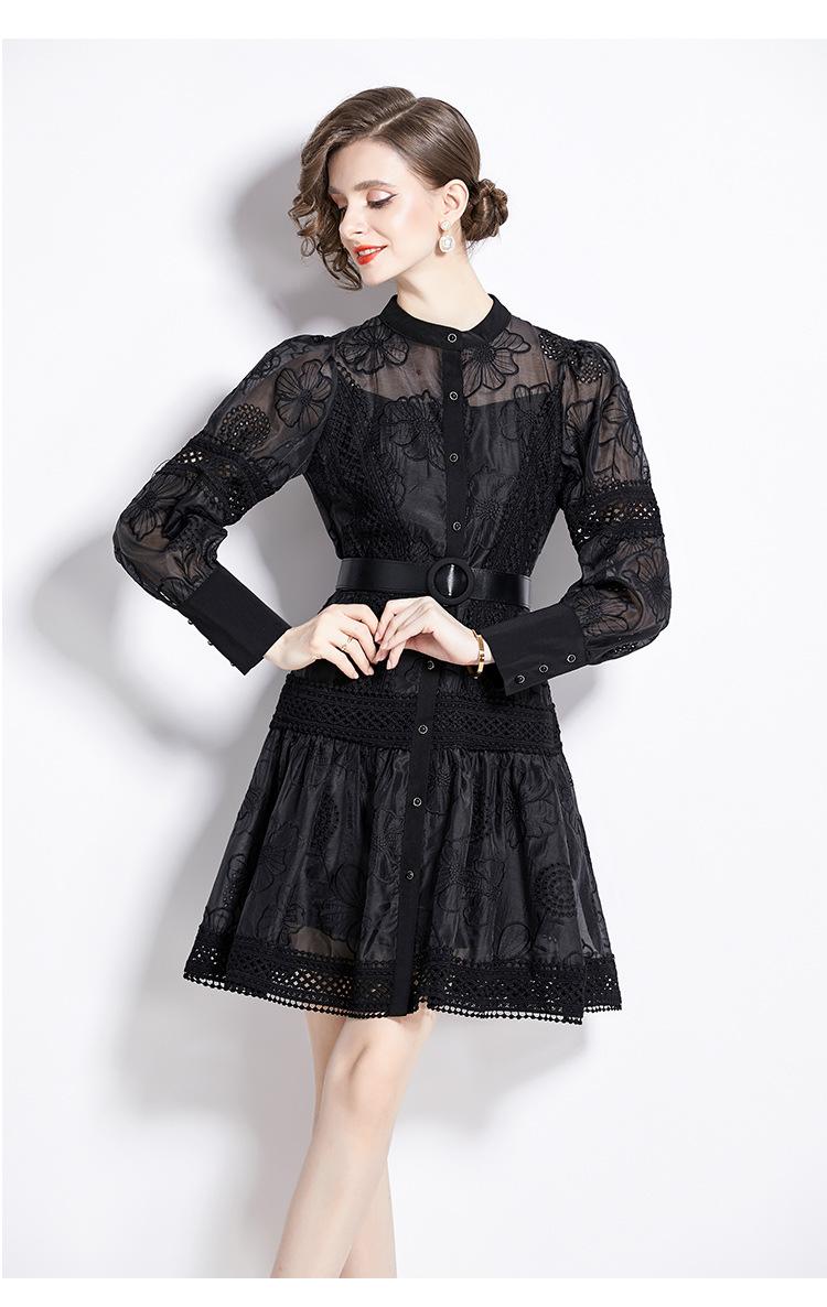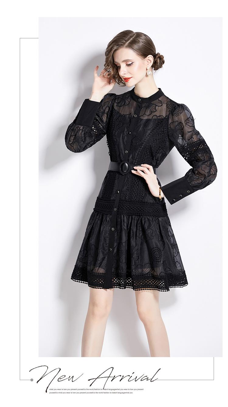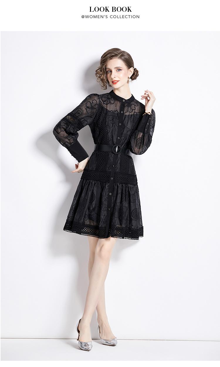 Vestido Elegante de Renda Novo Francês com Gola Alta Bordado Pesado Vazado Crochê Emagrecimento Cintura