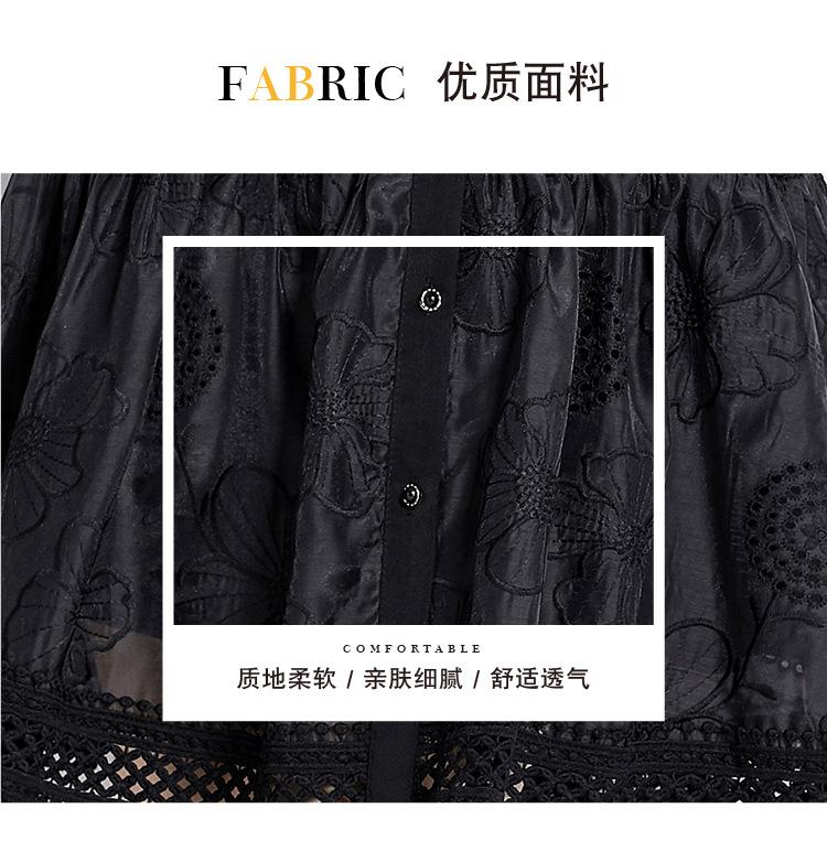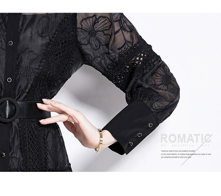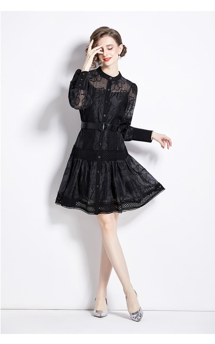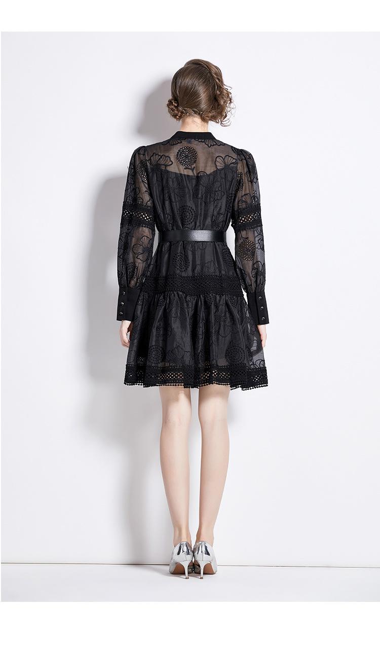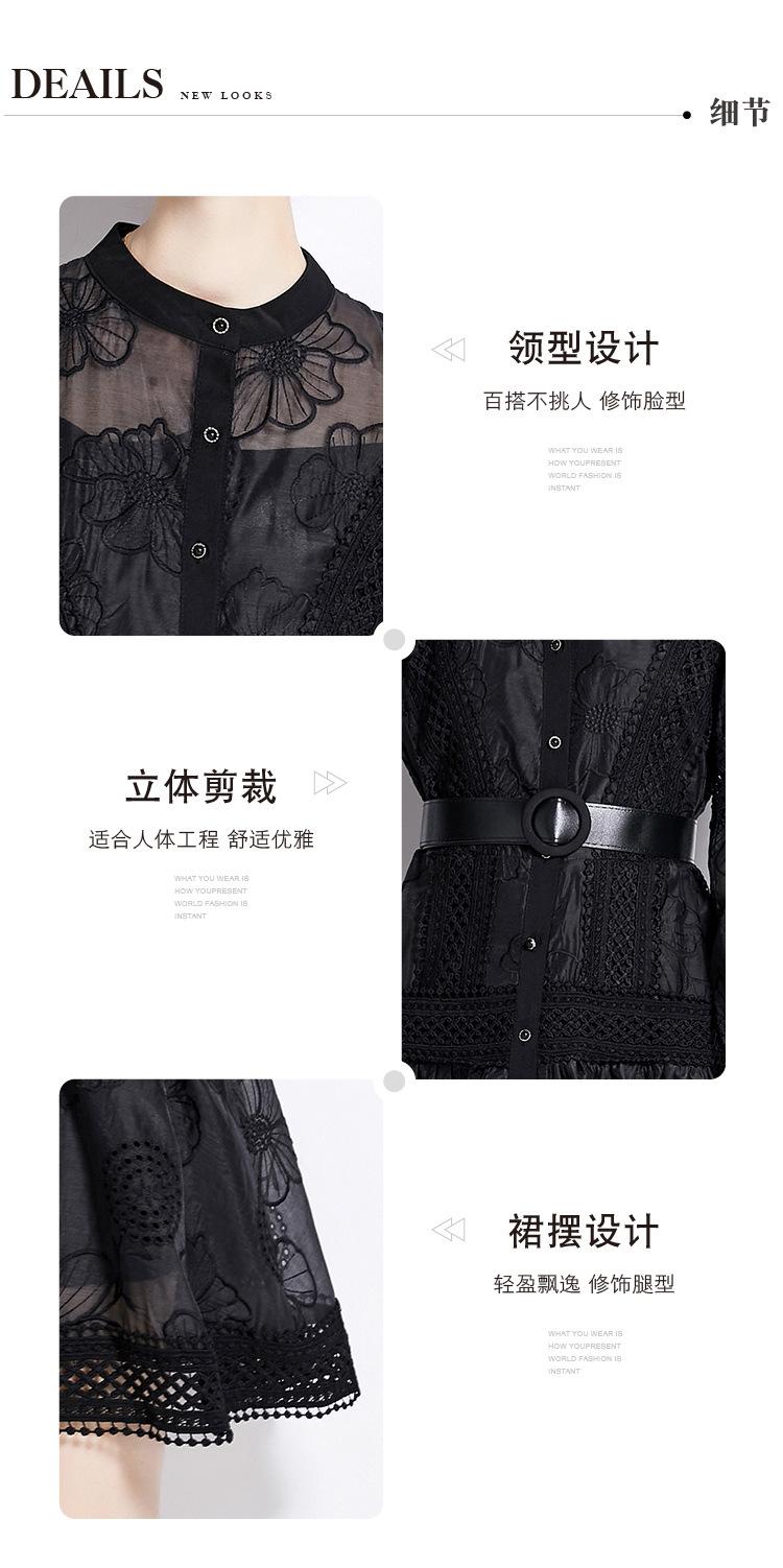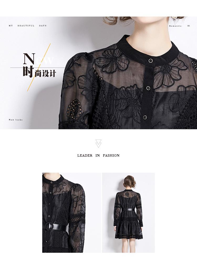 Hollow out + embroidery + solid color + lining + stitching/collage + belt
