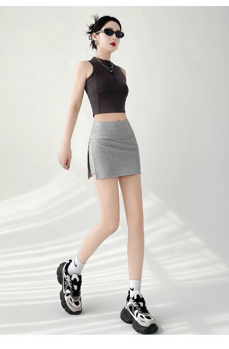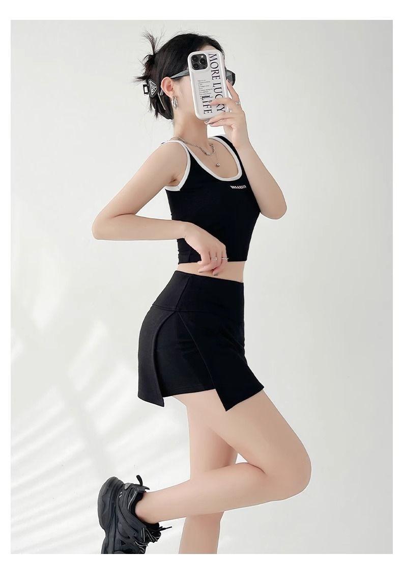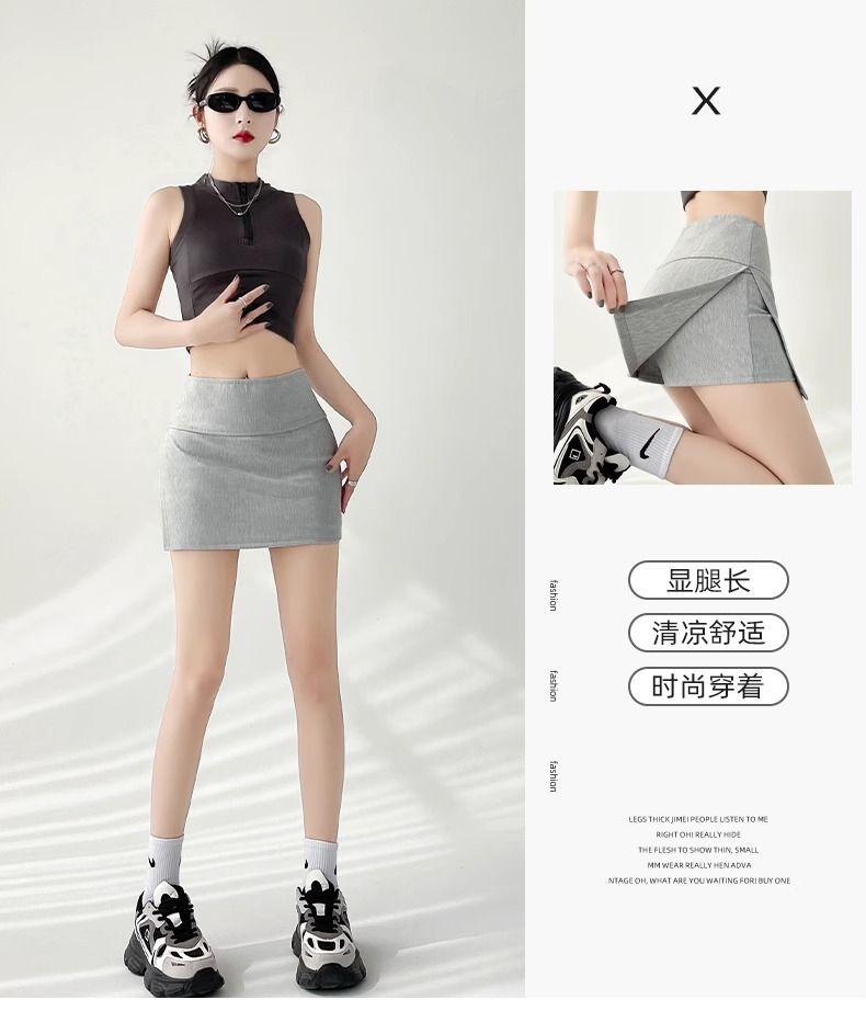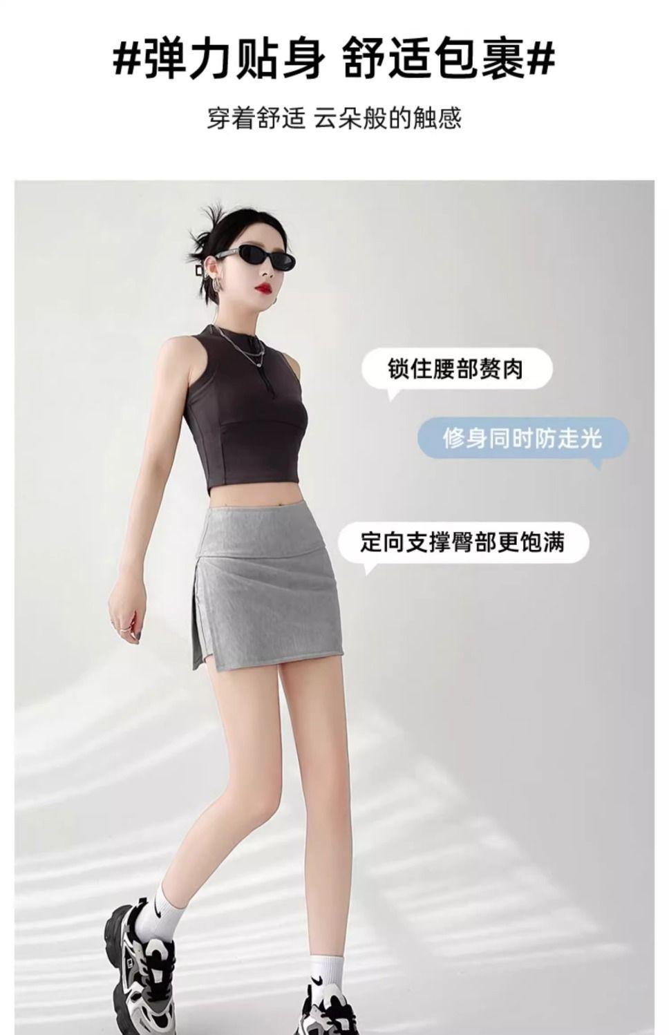 Calças Culottes de Yoga com Fenda Lateral Femininas Verão 2024 Novas Anti-Transparência Emagrecedora Saia Quadril Linha A Saia Esportiva