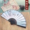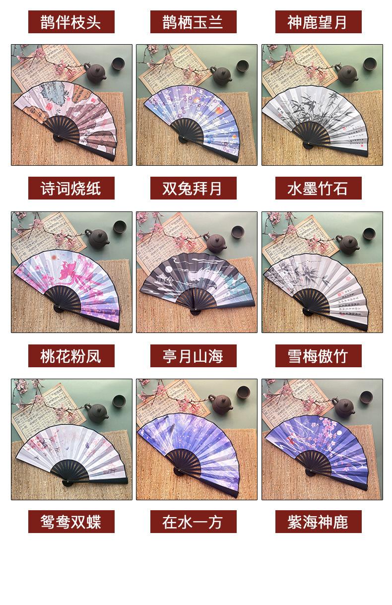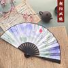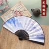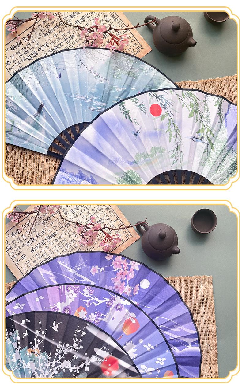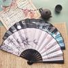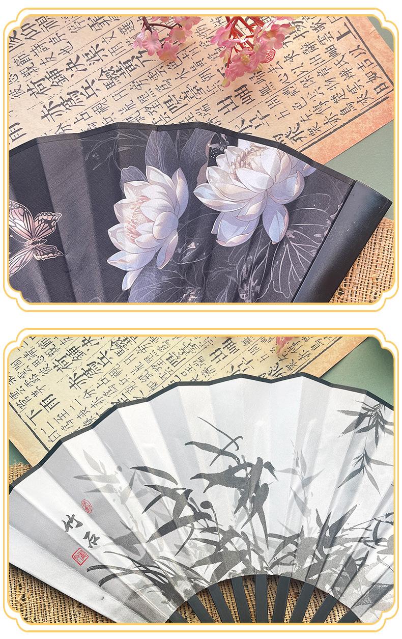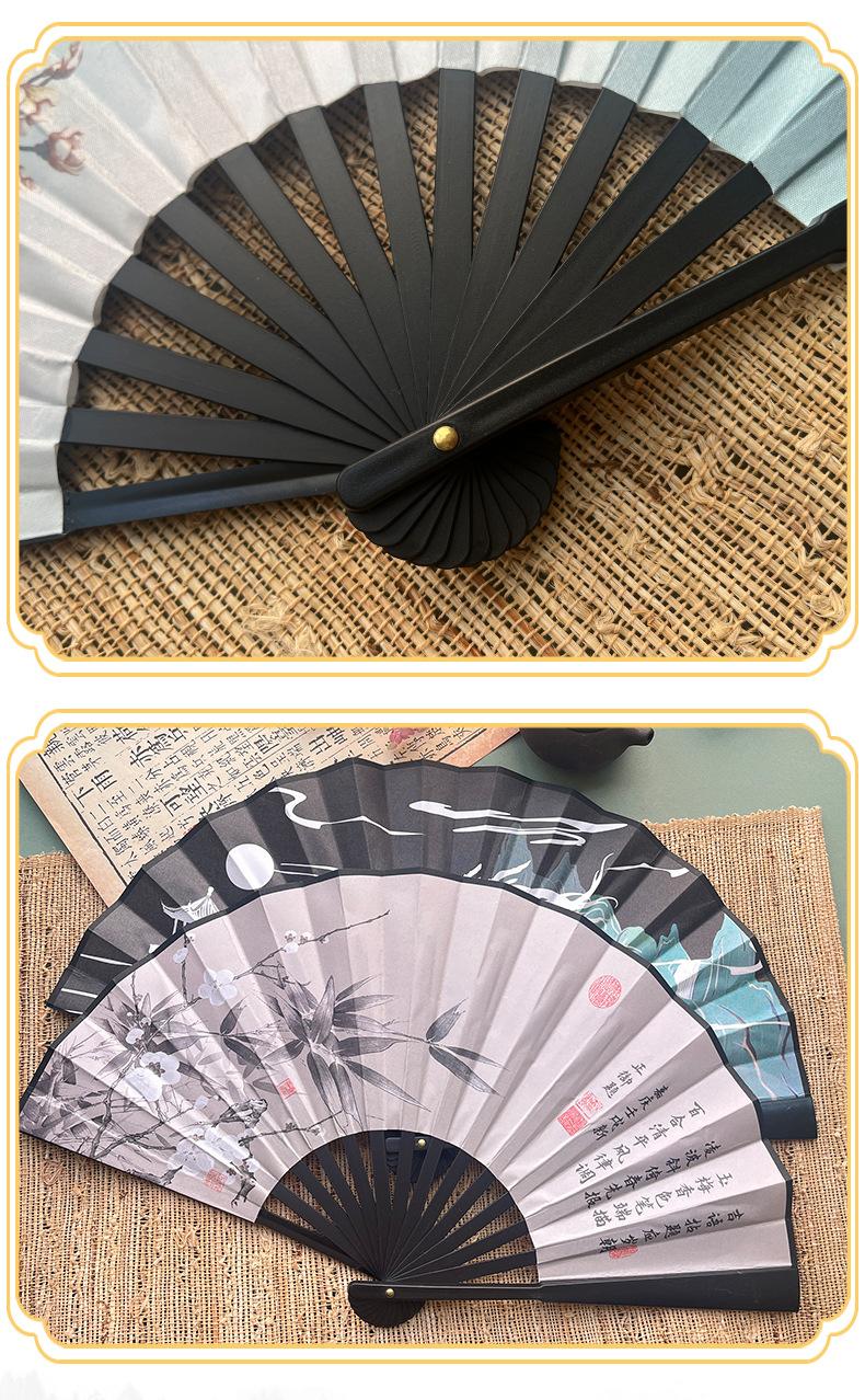 Leque Publicitário Estilo Chinês Estilo Antigo Tecido de Seda Leque Dobrável de 8 Polegadas Leque Dobrável Esculpido Bar Discoteca Maré Nacional Leque Masculino