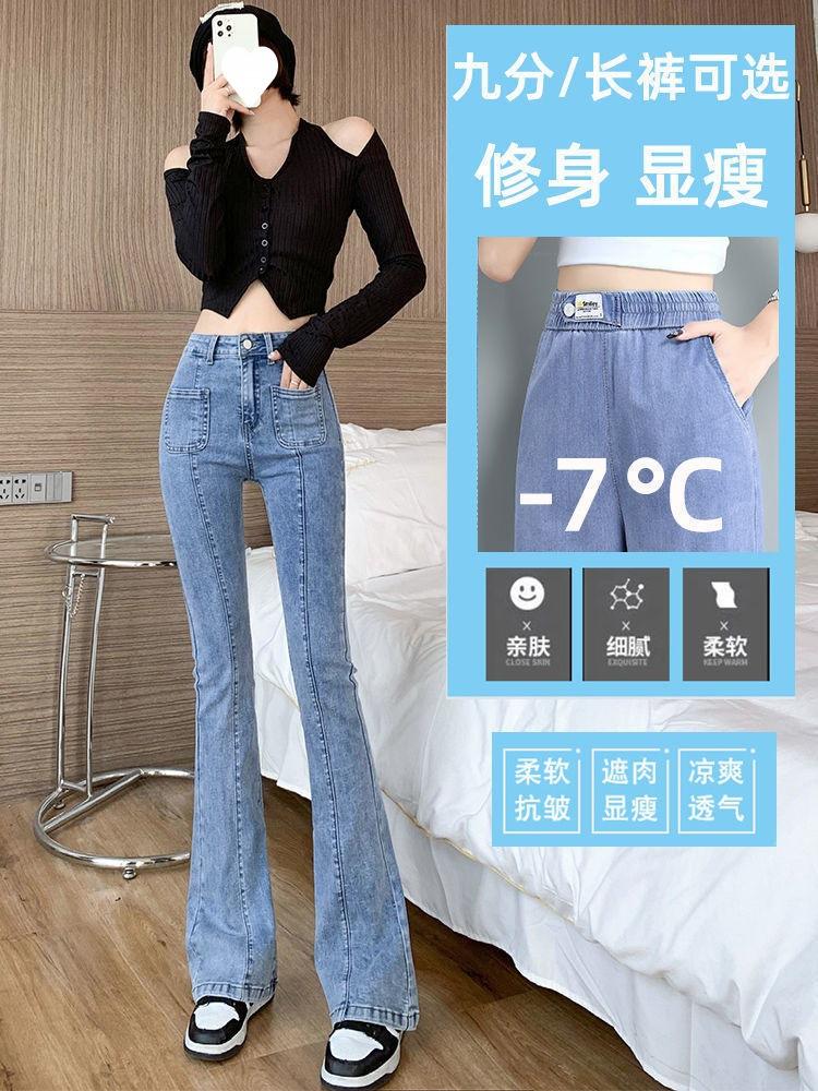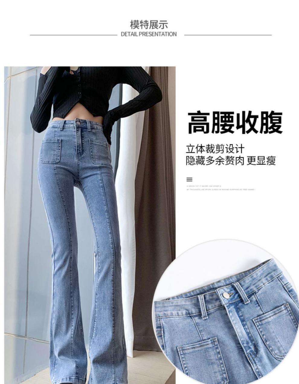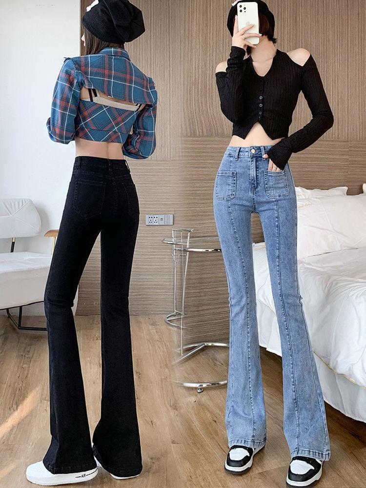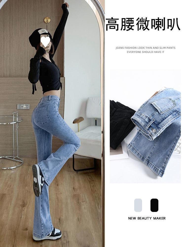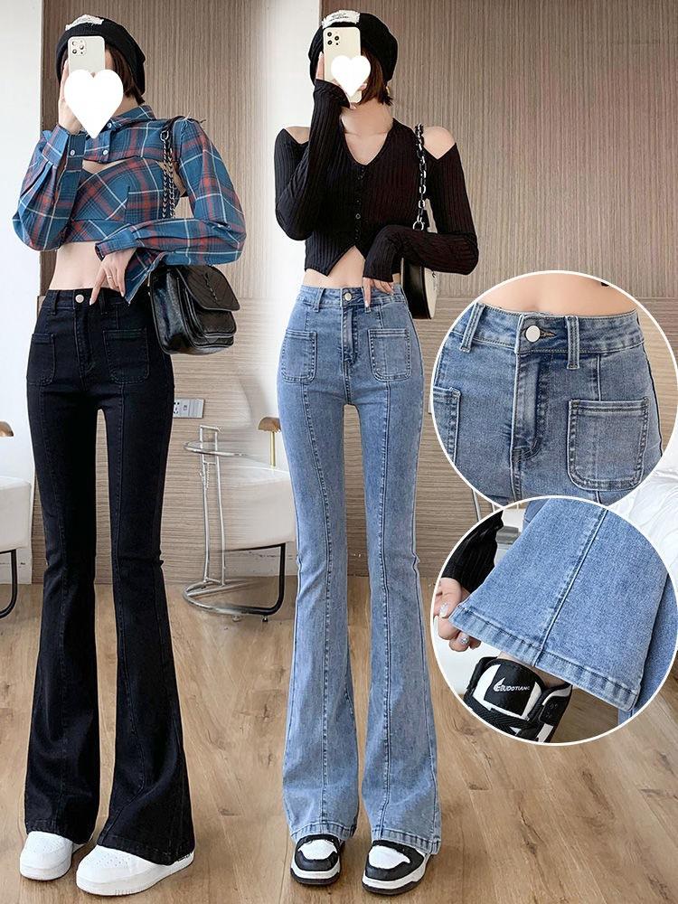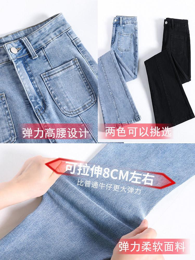 Micro-La Jeans Calças Femininas Novas Primavera e Outono Cintura Alta Ajuste Slim Calças Justas de Perna Larga Slim