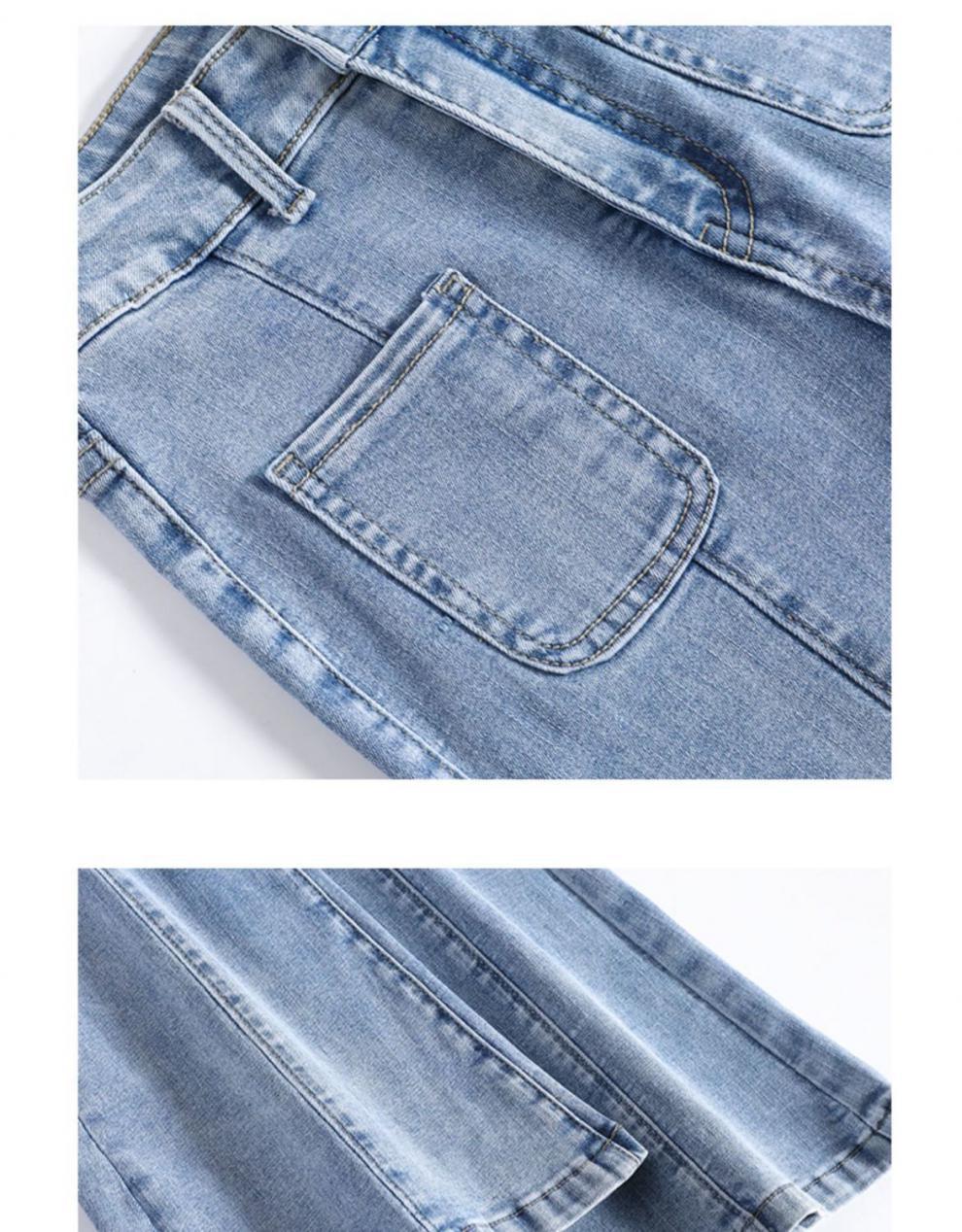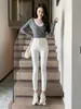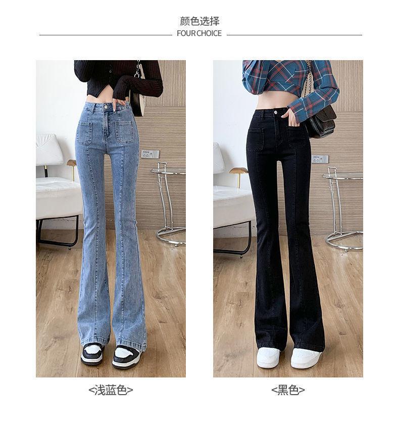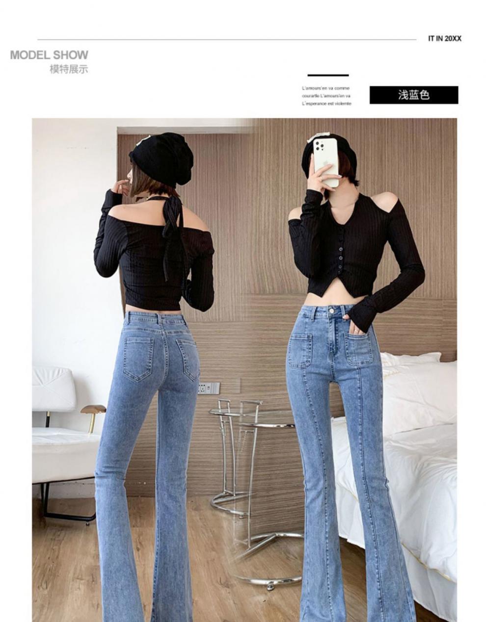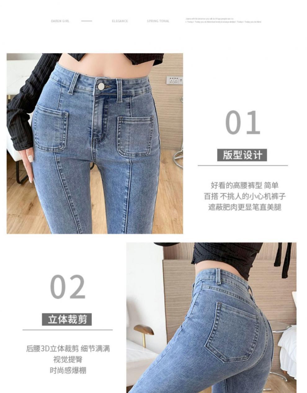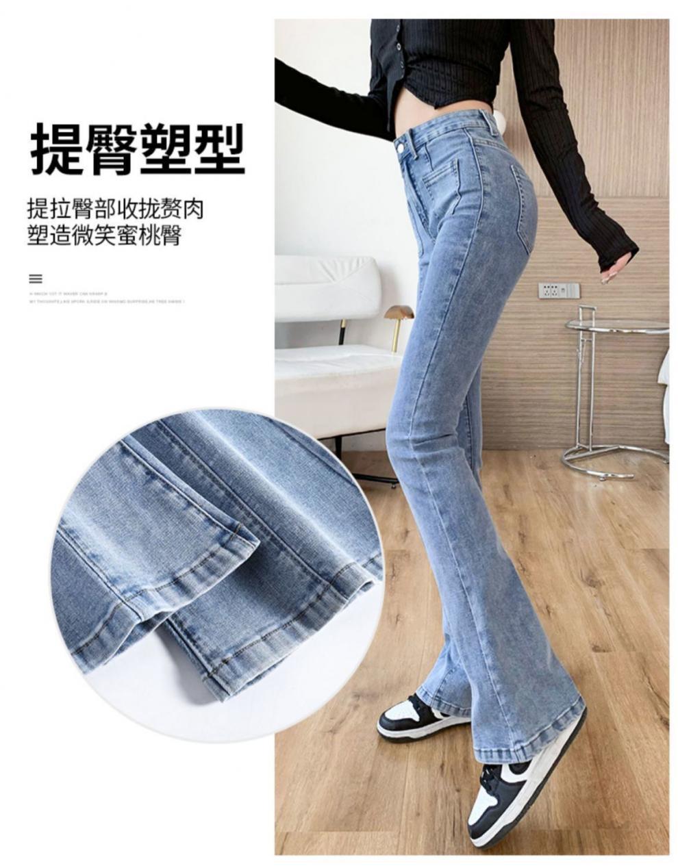 Micro-La Jeans Calças Femininas Novas Primavera e Outono Cintura Alta Ajuste Slim Calças Justas de Perna Larga Slim