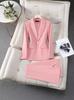 Terno Profissional Rosa de Manga Longa Feminino Jaqueta e Calça Conjunto de Duas Peças Simples e Fashionável Outono e Inverno Novo Elegante