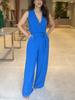 Comércio exterior transfronteiriço 2024 primavera e verão novo macacão longo solto com cadarço de moda europeia e americana, sem mangas, calças de perna larga para mulheres