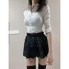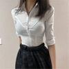 Camisa de Uniforme JK de Cintura Ajustada Feminina Pura Slim Versátil Ajustada Manga Curta Longa Camisa Branca Design Top de Garota Quente
