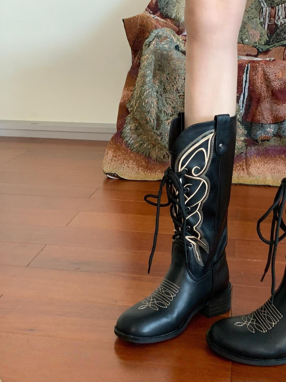 Botas femininas de salto grosso e bico redondo 2025 nova primavera e outono novas botas da moda