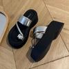 Sapatos de Sola Macia Meias Chinelos para Mulheres 2025 Primavera e Verão Novo Retrô Slip-On Flats-Soled Respirável Chinelos de Bico Fechado 533