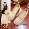Estilo étnico retrô bico redondo biqueira plana sapatos únicos femininos estação verão moda estilo meados do século tênis feios fofos sapatos de couro pequenos