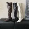 Outono/Inverno 2025 Nova Bota de Cano Médio com Salto Grosso Até o Joelho Fivela de Cinto Puxar Bota de Cavaleiro Feminina Bico Fino Vintage Bota Longa Feminina