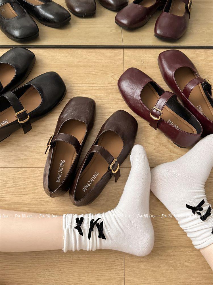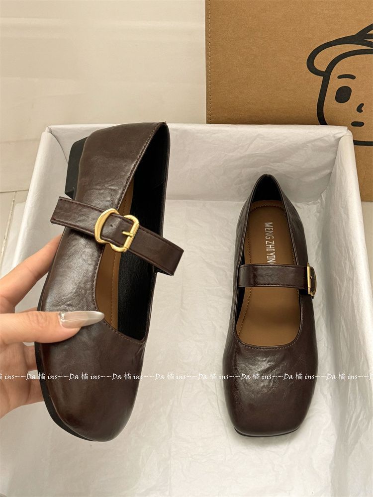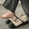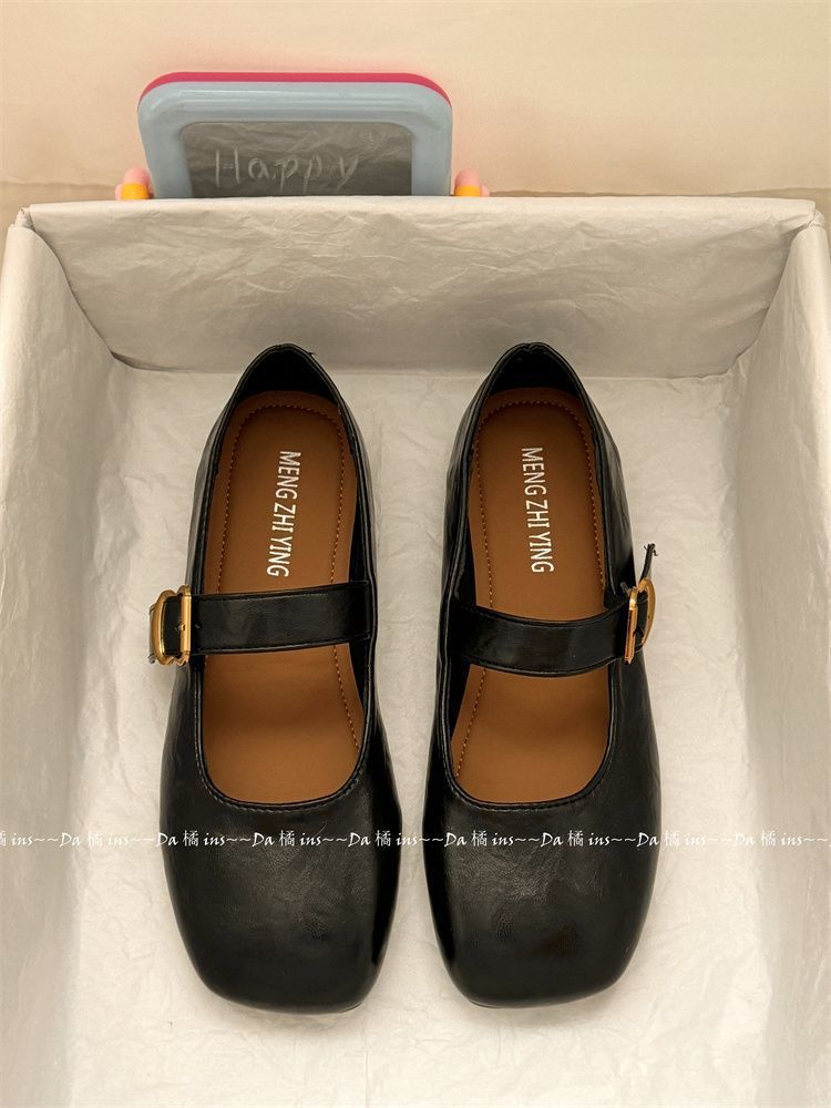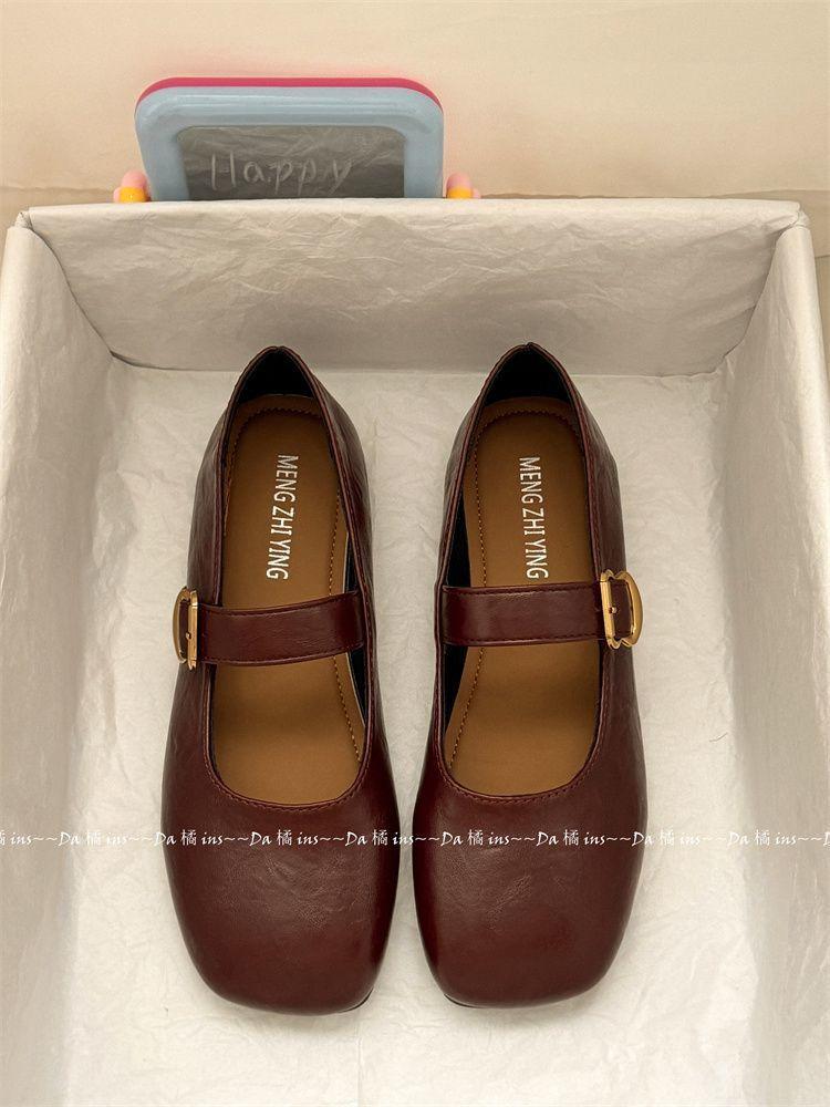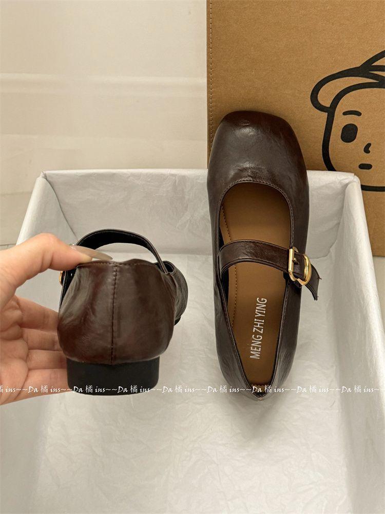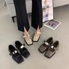 Sapatos Solteiros de Boca Baixa Femininos Vestido Francês Primavera Outono Casual Retrô 2025 Novo Bico Quadrado Mary Jane Sapatos de Couro Pequenos Preguiçosos