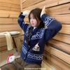 Novo Suéter de Outono Feminino Fair Isle Cardigã Retrô com Botões de Chifre Top de Outono Cardigã de Tricô de Designer Feminino