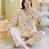 Pijama de algodão e seda para mulheres, estilo primavera e outono, roupa de casa de rayon de manga três quartos para mãe, estilo fino de verão, conjunto cardigan de algodão e seda plus size