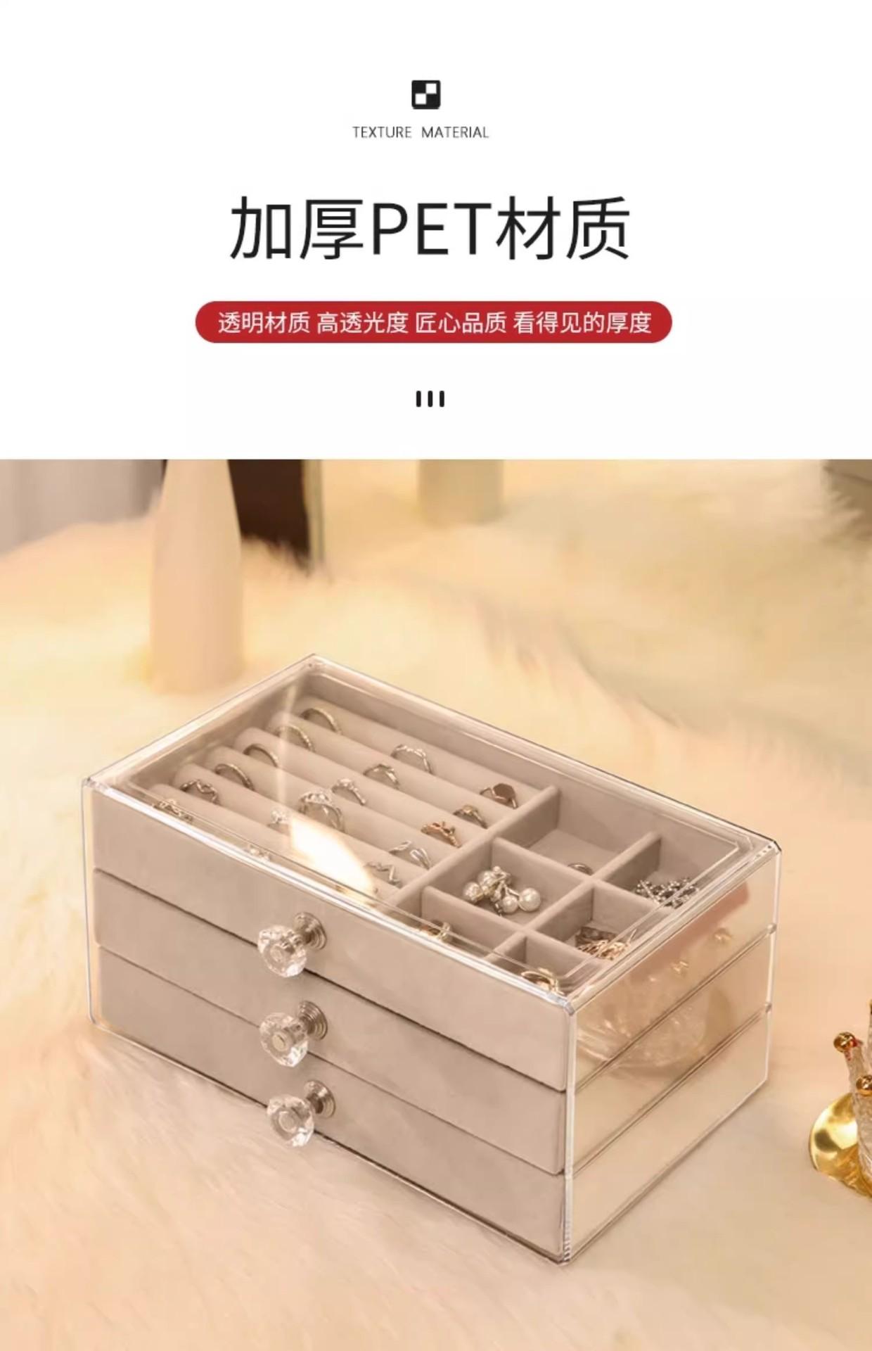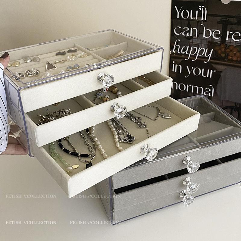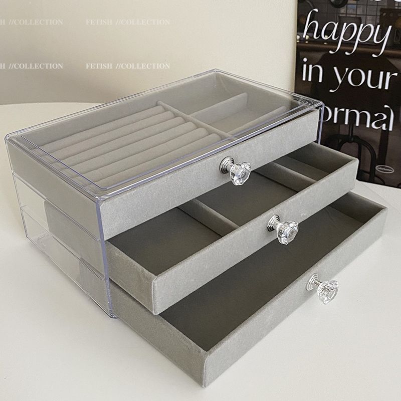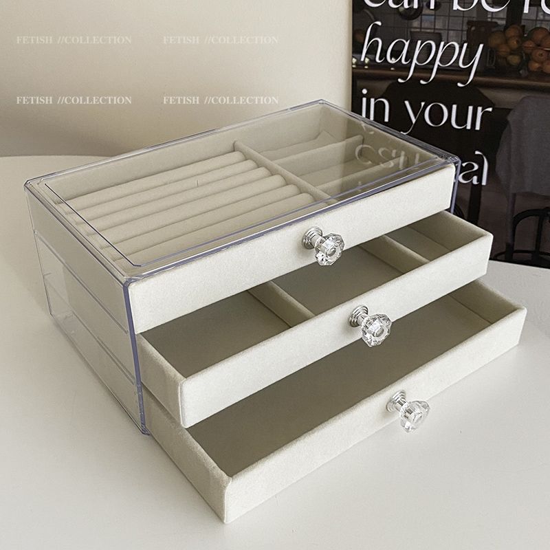 Caixa de Armazenamento de Joias Multicamadas Transparente Criativa Caixa de Joias Tipo Gaveta de Veludo de Três Camadas Colar Anel Relógio Caixa de Joias